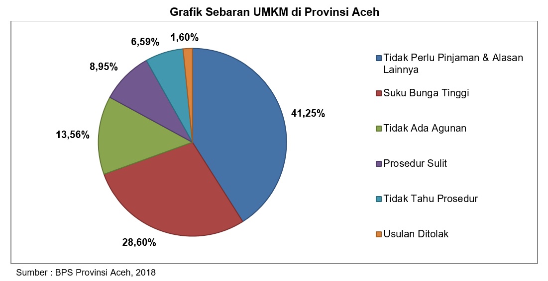 Dilihat dari sudut pandang pelaku usaha UMKM, tentu saja terdapat berbagai alasan mengapa mereka masih enggan untuk mengakses layanan pembiayaan melalui lembaga keuangan. Berdasarkan kajian yang dilakukan oleh BPS Provinsi Aceh, hanya 10,74% UMKM yang memperoleh/mengajukan kredit di tahun 2016. Ada berbagai alasan bagi UMKM untuk tidak mengajukan/memperoleh kredit dari Lembaga Keuangan, di antaranya adalah kekhawatiran akan suku bunga yang tinggi dan tidak adanya agunan yang dapat dijaminkan untuk memperoleh modal usaha.