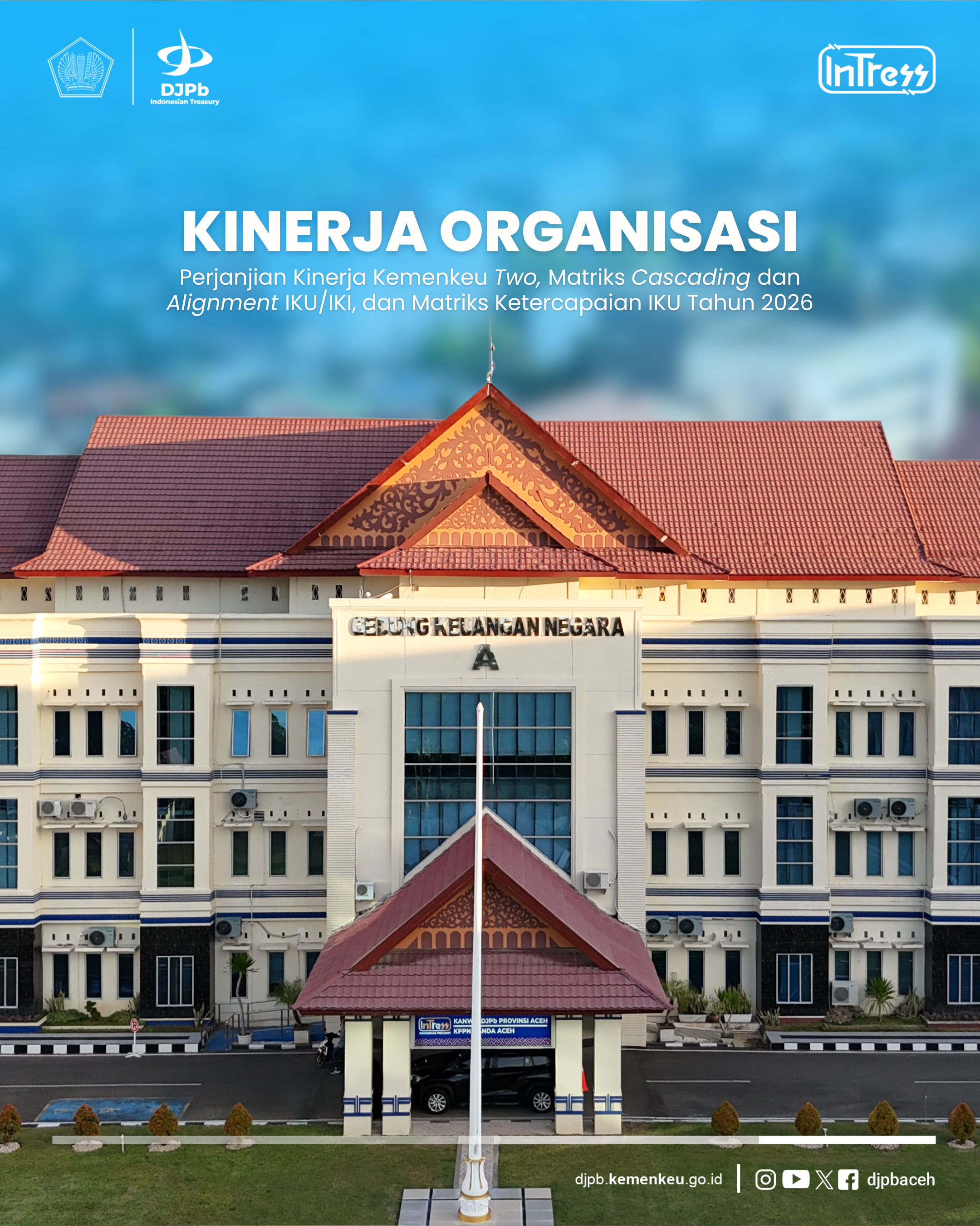 Capaian Indikator Kinerja Utama (IKU) menjadi tolok ukur utama dalam menilai keberhasilan strategi tersebut. Untuk itu, Kanwil DJPb Aceh telah menyusun matriks ketercapaian IKU berdasarkan hasil identifikasi bersama yang melibatkan Kepala Kanwil, para kepala bagian/bidang, pengelola kinerja organisasi, serta seluruh pegawai. Identifikasi tersebut dilaksanakan melalui Dialog Kinerja Risiko Organisasi periode Maret 2026 yang diselenggarakan pada 10 Maret 2026 berdasarkan Undangan Kepala Kanwil Nomor ND-36/WPB.01/2026. Dalam forum tersebut juga dilakukan pembahasan matriks cascading dan alignment IKU Kemenkeu-Two sampai Kemenkeu-Five guna memastikan keterkaitan dan keselarasan antar level kinerja organisasi.