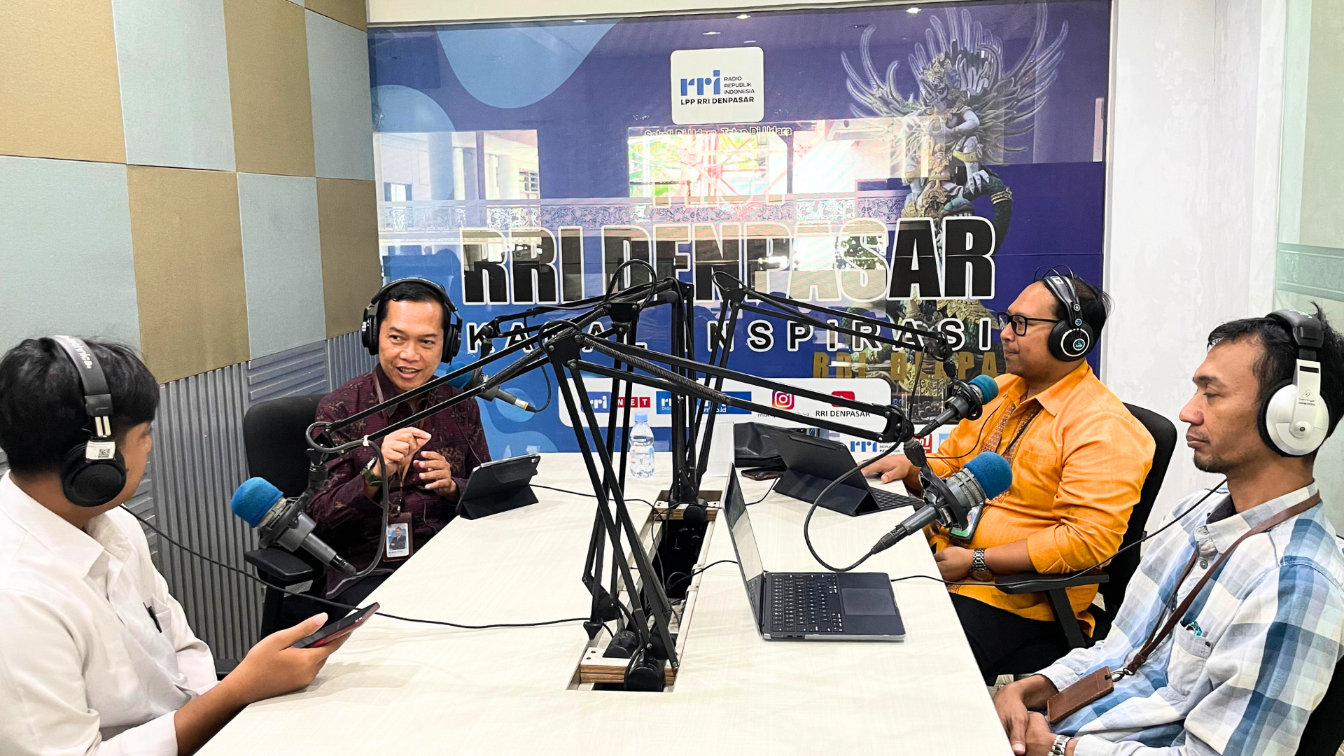 Denpasar, 19 Agustus 2025 – Kanwil Direktorat Jenderal Perbendaharaan (DJPb) Provinsi Bali bekerjasama dengan RRI Denpasar menggelar Podcast Interaktif bertajuk “Kita Setara” yang mengangkat tema “Perkembangan Fiskal, Ekonomi, dan Kredit Usaha Rakyat (KUR) di Regional Bali” pada Selasa (19/8). Sebagai narasumber hadir Kepala Kanwil DJPb Bali, Muhamad Mufti Arkan, Kepala Seksi Pembinaan Pelaksanaan Anggaran II (PPA II) DJPb Bali, Kusumo Adi Wibowo, dan Kepala Bidang Kredit Bank BPD Bali, AA Ngurah Oka Dhananjaya.