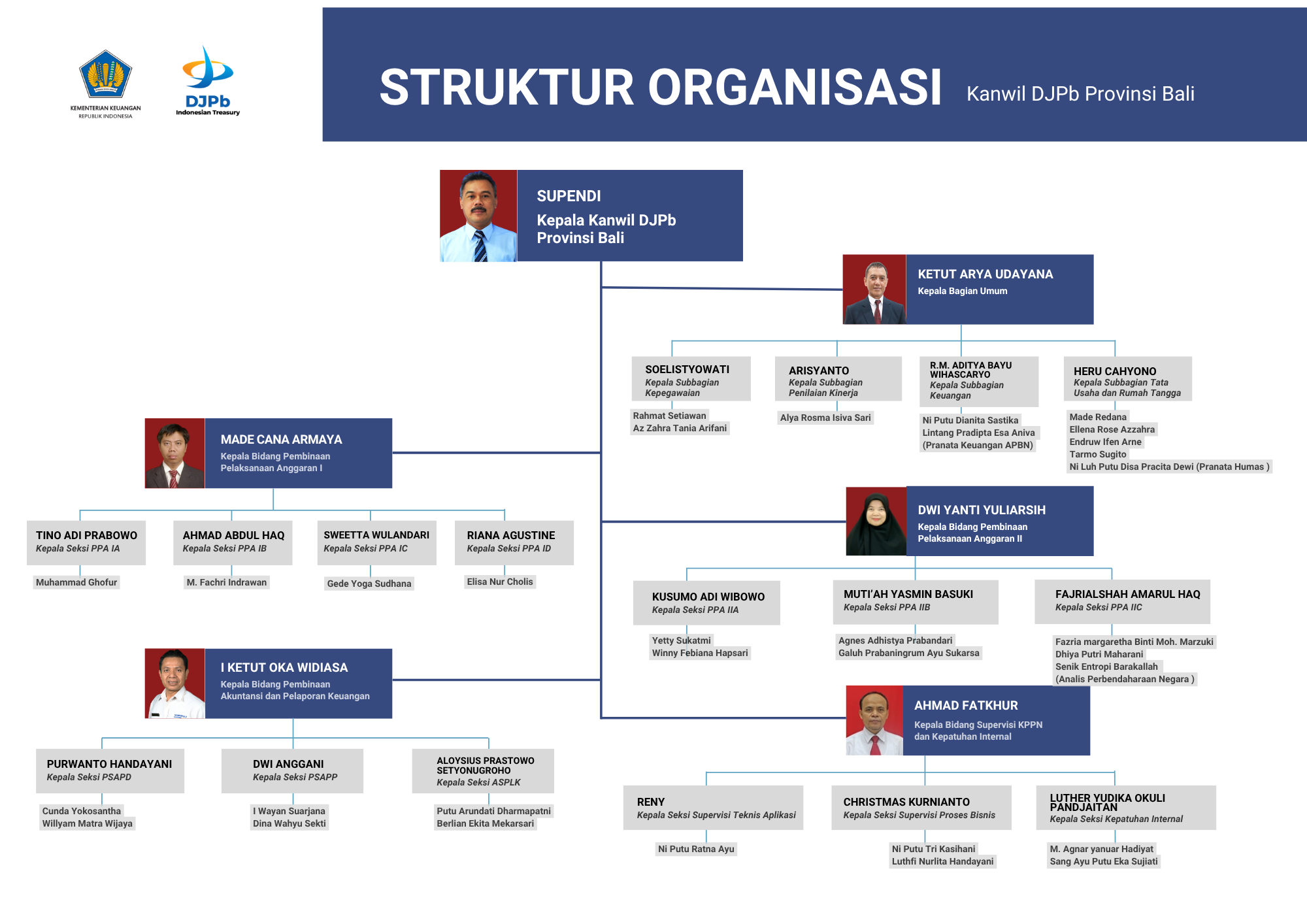 Kantor Wilayah Direktorat Jenderal Perbendaharaan merupakan instansi vertikal Direktorat Jenderal Perbendaharaan (DJPB) yang berada di daerah dan bertanggung jawab kepada Direktur Jenderal Perbendaharaan. Kantor Wilayah Ditjen Perbendaharaan Provinsi Bali membawahi KPPN Denpasar, KPPN Singaraja, dan KPPN Amlapura, sesuai dengan Keputusan Menteri Keuangan RI Nomor 101/PMK.01/2008. Sejak berdiri sudah terjadi 17 (tujuh belas) kali pergantian Kepala Kantor Wilayah.