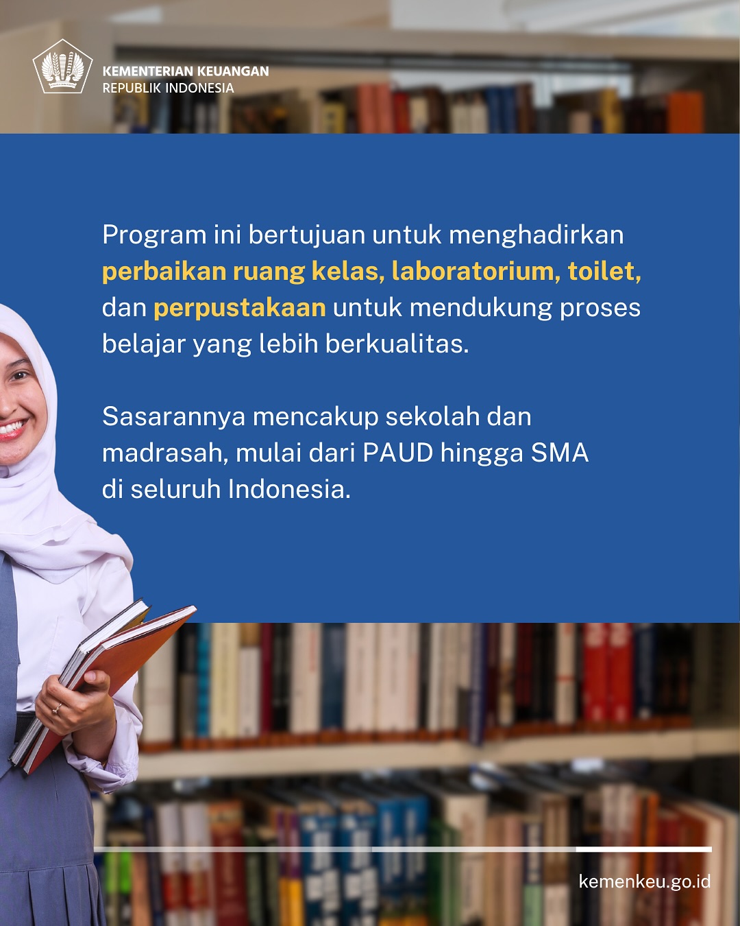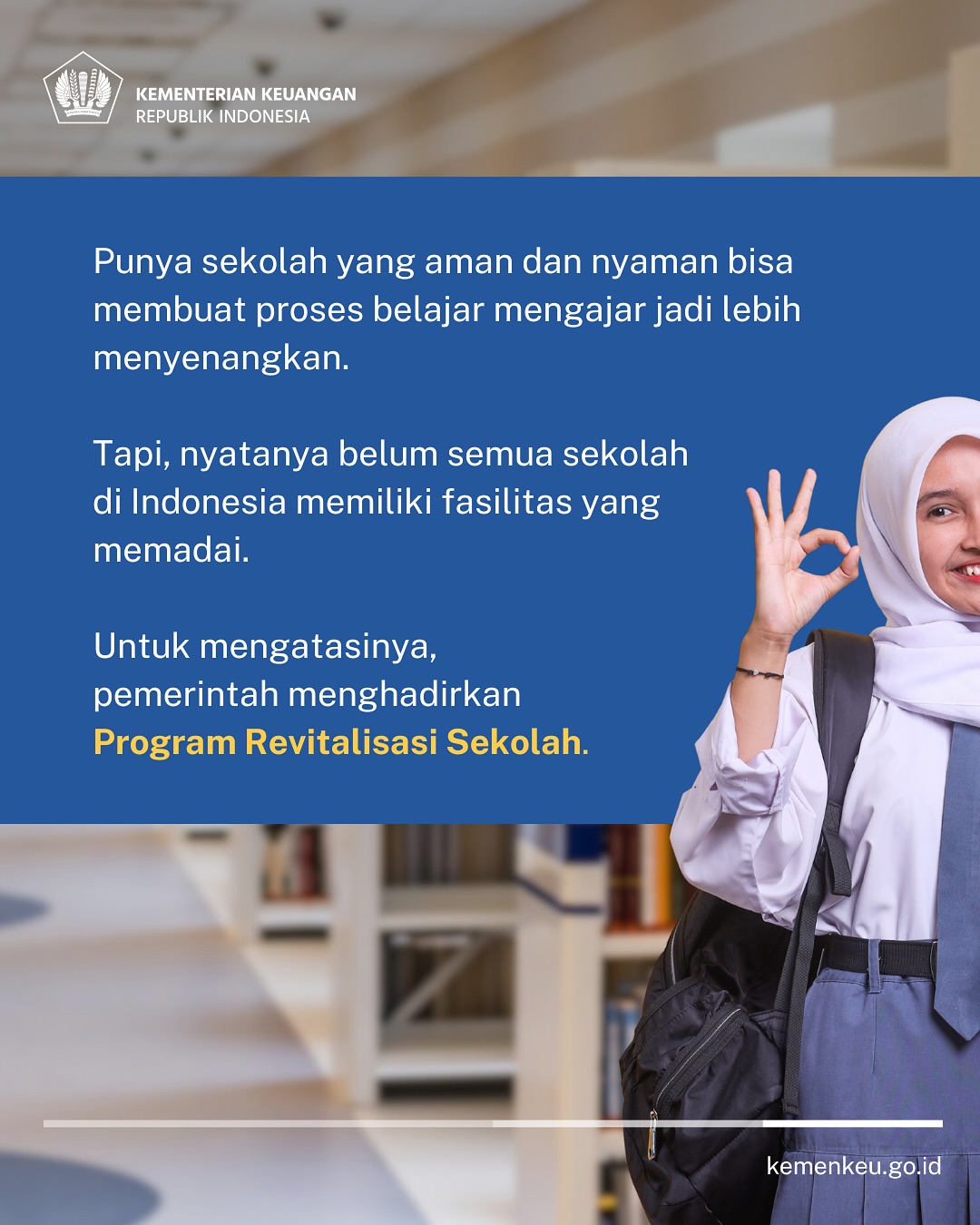 Masa depan yang cerah dimulai dari ruang belajar yang layak. Revitalisasi sekolah hadir untuk tingkatkan kualitas pembelajaran dengan fasilitas yang lebih baik. Revitalisasi Sekolah berdasarkan Instruksi Presiden (Inpres) Nomor 7 Tahun 2025 tentang Percepatan Pembangunan & Revitalisasi Sekolah serta Digitalisasi Pembelajaran merupakan inisiatif untuk meningkatkan kualitas fasilitas dan lingkungan belajar di sekolah-sekolah yang sudah ada. Program ini mencakup renovasi bangunan, penyediaan peralatan modern, dan perbaikan infrastruktur penunjang lainnya untuk menciptakan lingkungan belajar yang lebih aman, nyaman, dan kondusif bagi siswa dan guru.