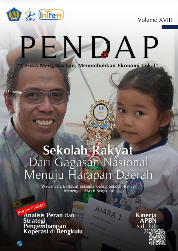 Sebagai representasi Kementerian Keuangan di daerah, Kanwil DJPb Provinsi Bengkulu perlu untuk melakukan publikasi terkait tugas dan fungsinya selaku Treasurer, Regional Economist, dan Financial Advisor (TREFA). Buletin PENDAP merupakan salah satu upaya strategi komunikasi yang dilakukan oleh Kanwil DJPb Provinsi Bengkulu dalam memberikan informasi dan transparansi seluas-luasnya, tidak hanya kepada para stakeholder terkait, tetapi juga kepada masyarakat luas. Dengan motto PACAK (Profesional, Akuntabel, Cepat, Amanah, dan Kolaboratif), Kanwil DJPb Provinsi Bengkulu selalu berusaha memberikan kontribusi maksimal dalam melaksanakan tugas dan fungsinya, serta proaktif dalam rangka mendukung pembangunan di Provinsi Bengkulu.
