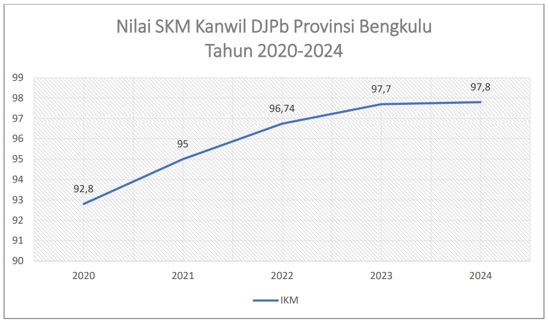 Komitmen Kantor Wilayah Direktorat Jenderal Perbendaharaan (Kanwil DJPb) Provinsi Bengkulu dalam memberikan pelayanan terbaik kepada masyarakat terus menunjukkan hasil positif. Melalui Survei Kepuasan Masyarakat (SKM) yang dilaksanakan secara berkala menggunakan aplikasi e-SKPL, tingkat kepuasan pengguna layanan tercatat mengalami tren peningkatan dari tahun ke tahun.