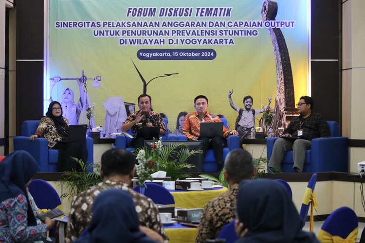 Yogyakarta, 15 Oktober 2024 - Kanwil Direktorat Jenderal Perbendaharaan (DJPb) Daerah Istimewa Yogyakarta (DIY) menyelenggarakan Focus Group Discussion (FGD) Tematik bertajuk “Sinergitas Pelaksanaan Anggaran dan Capaian Output untuk Penurunan Stunting di Wilayah DIY” pada Selasa (15/10/2024) di Aula Kanwil DJPb DIY, Maguwoharjo, Sleman. Kegiatan ini bertujuan untuk meningkatkan sinergi instansi pusat dan pemerintah daerah melalui dukungan fiskal guna mempercepat penurunan prevalensi stunting di DIY.