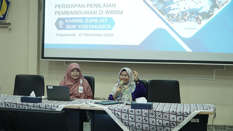 Yogyakarta, 27 November 2025 - Sebagai upaya untuk memperluas Island of Integrity di lingkungan Kementerian Keuangan (Kemenkeu), Kantor Wilayah Direktorat Jenderal Perbendaharaan Provinsi Daerah Istimewa Yogyakarta (Kanwil DJPb DIY) melakukan sharing knowledge pembangunan Zona Integritas Wilayah Birokrasi Bersih Melayani (ZI WBBM) pada Kanwil DJPb DIY kepada para pejabat/pegawai Balai Diklat Keuangan (BDK) Yogyakarta pada Kamis (27/11/2025). Kegiatan ini dilaksanakan di Aula BDK Yogyakarta.