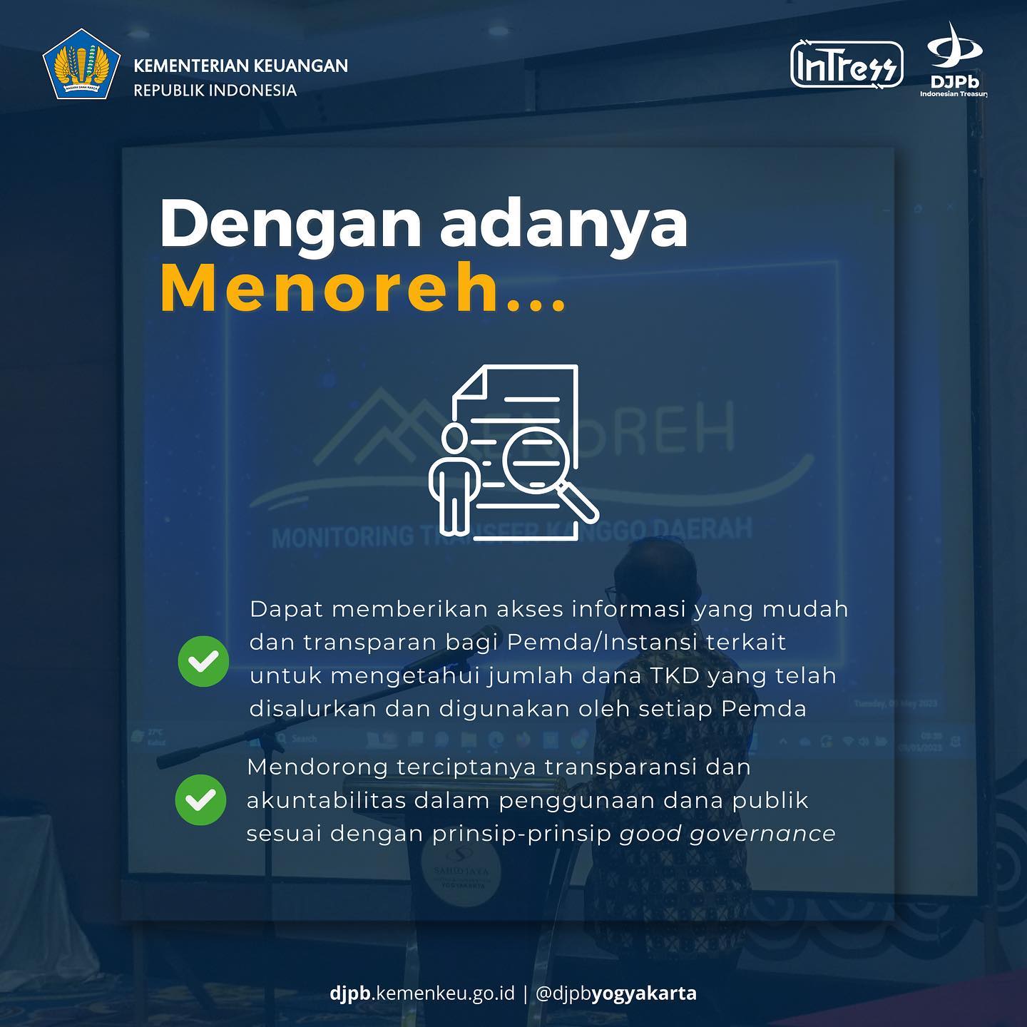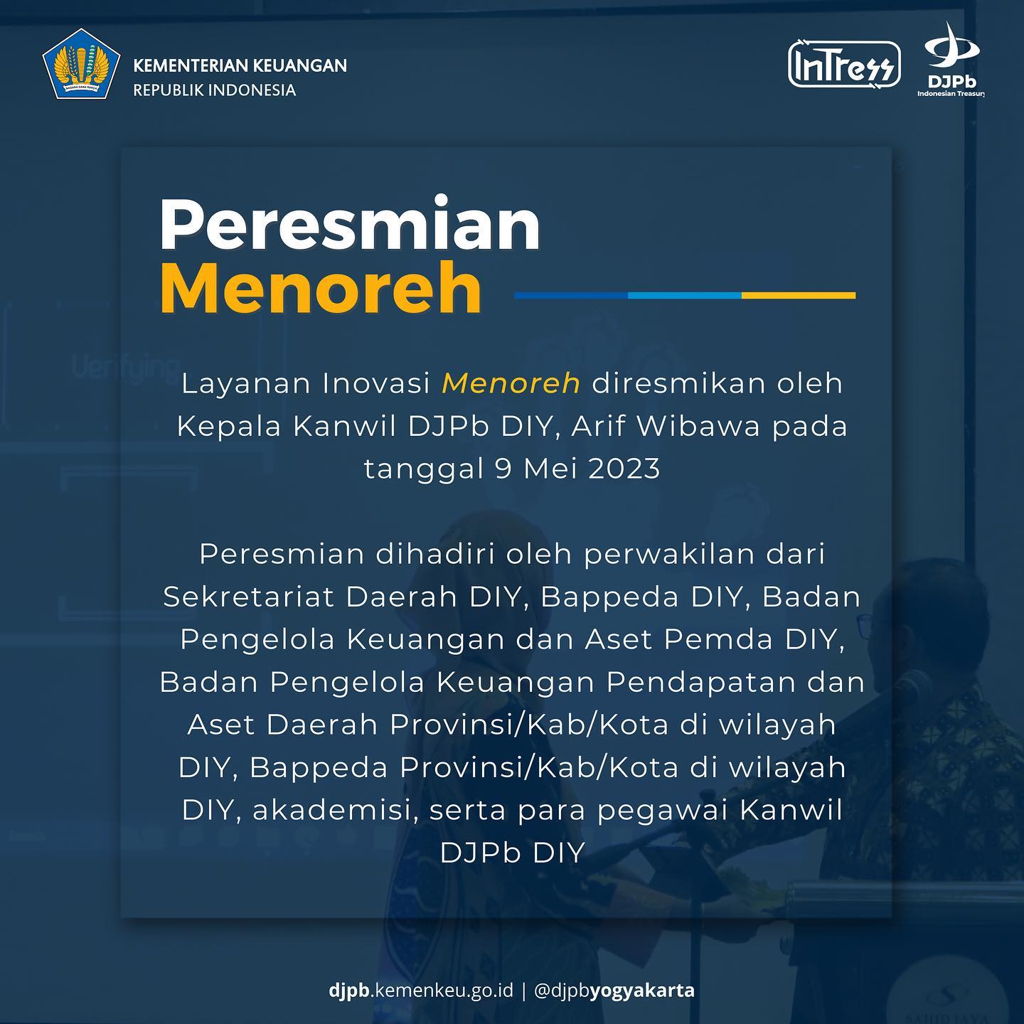 Pada pekan pertama Bapak Agung Yulianta sebagai Kepala Kanwil DJPb DIY, telah diadakan kegiatan pengarahan Kepala Kanwil DJPb DIY kepada seluruh pegawai untuk menyelaraskan visi dan misi guna meningkatkan kinerja Kanwil DJPb DIY bertempat di Aula Kanwil DJPb DIY (17/5).