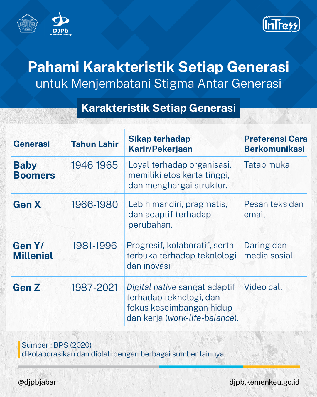Stigma antargenerasi muncul ketika perbedaan nilai, karakter, dan gaya kerja dikotakkan dalam label negatif. Ini dapat menciptakan jarak emosional, miskomunikasi, dan bahkan menurunkan produktivitas tim. Di lingkungan Kementerian Keuangan, interaksi antara pegawai dari berbagai generasi—mulai dari Baby Boomers hingga Generasi Z—menciptakan dinamika kerja yang beragam.