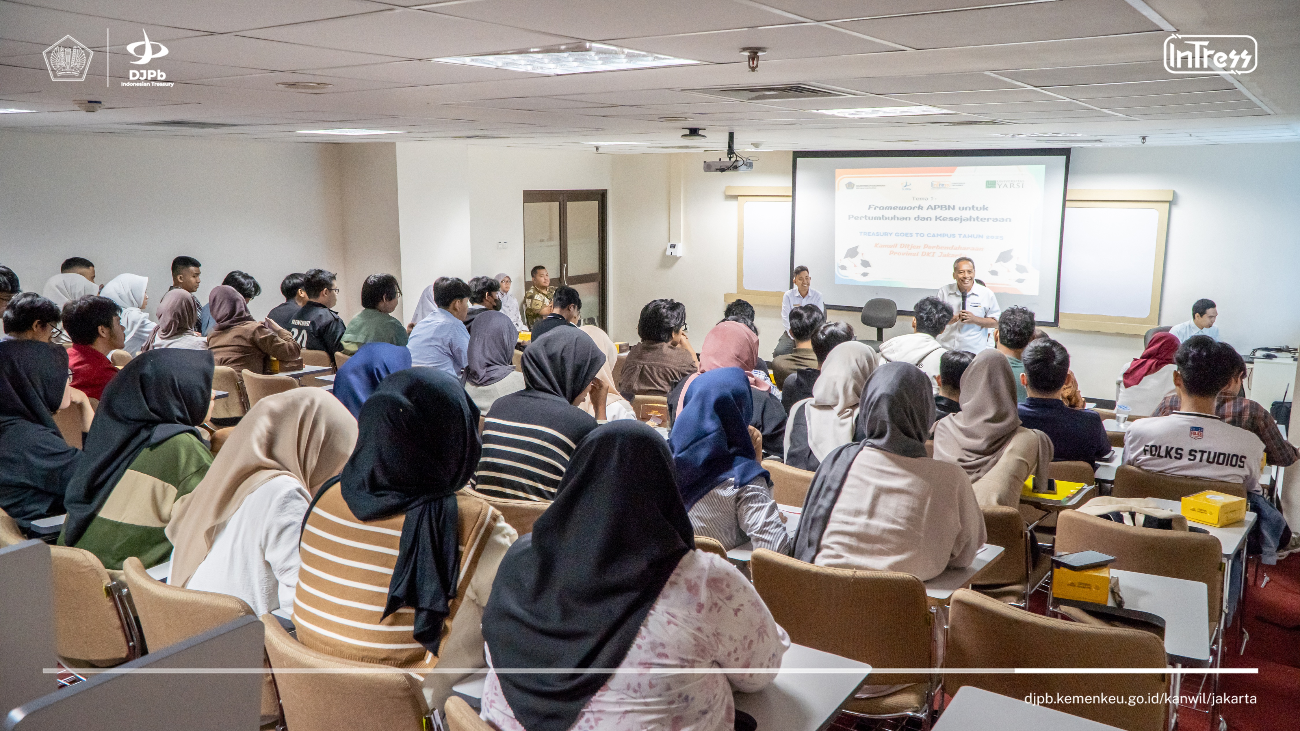 Kegiatan yang berlangsung pada Senin, 8 Desember 2025 tersebut menghadirkan Kepala Bidang PPA II Kanwil DJPb DKI Jakarta, Langgeng Suwito, bersama tim. Dalam sesi diskusi interaktif, mahasiswa diajak memahami lebih dalam peran dan manfaat Anggaran Pendapatan dan Belanja Negara (APBN) dalam pembangunan nasional.