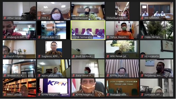 Semarang, Liputan djpb.kemenkeu.go.id/kanwil/jateng/id - Melanjutkan upaya mengejar belanja di kuartal ketiga, Kanwil Ditjen Perbendaharaan Provinsi Jawa Tengah menggelar One On One Meeting Seri Kedua Percepatan Pelaksanaan Anggaran bagi seluruh Satker di Jawa Tengah. Kegiatan ini dilaksanakan pada hari Selasa, 25 Agustus 2020 secara daring. Pada kesempatan tersebut, diundang 30 Satker yang terbagi dalam 2 sesi. Sesi pertama, dimulai pada pukul 09.00 WIB dihadiri oleh Satker dari Kementerian Perhubungan, Kementerian Pendidikan, Kementerian Kesehatan dan Kementerian Tenaga Kerja. Selanjutnya sesi kedua dimulai pada pukul 14.00 WIB, dihadiri oleh Satker Bawaslu, Otorita Borobudur, BPOM, Dispermasdesdukcapil, BPK, BPKP, Distanbun, Dinakkeswan, Perikanan, Basarnas, RRI dan TVRI.
