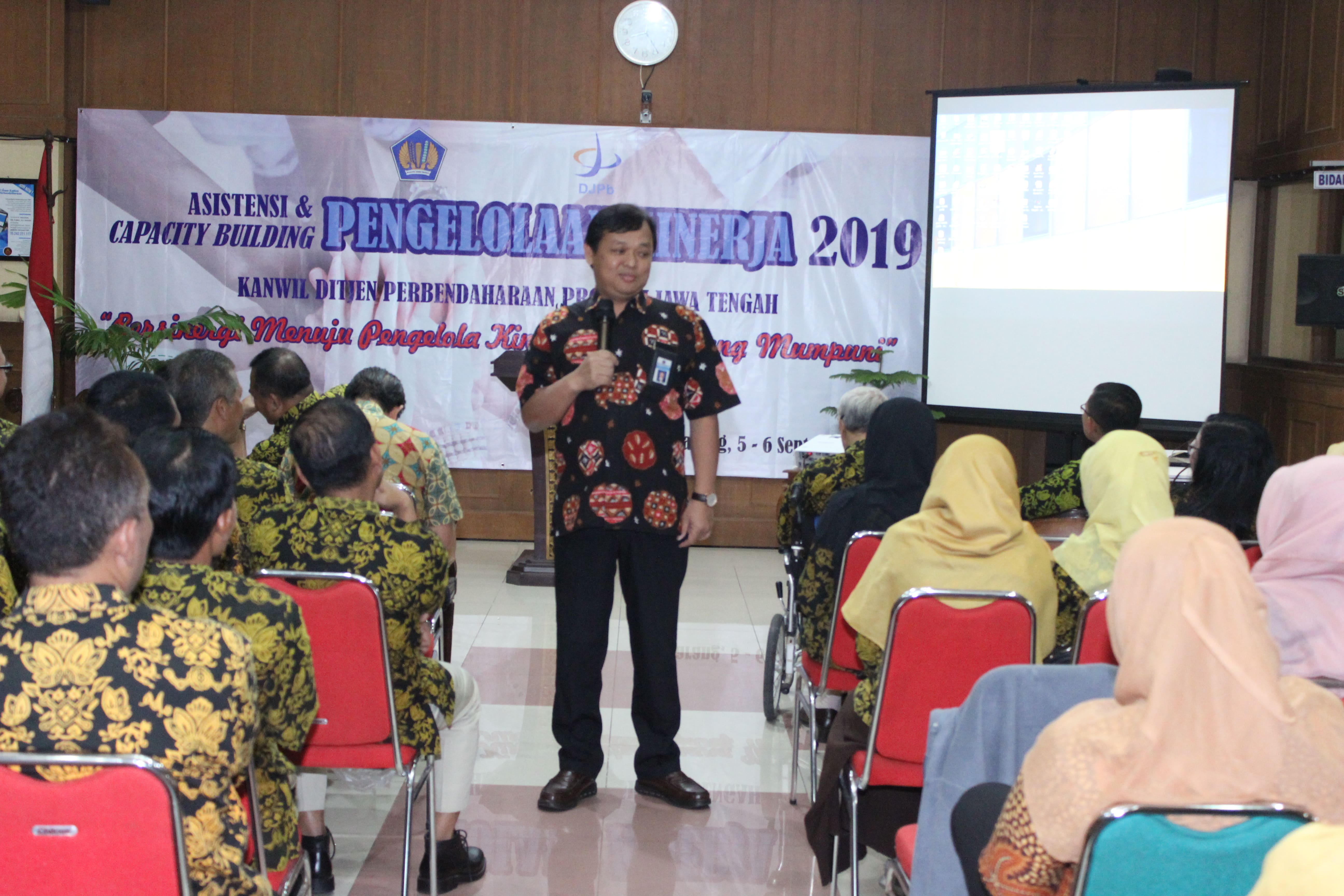 | Asistensi dan Capacity Building Pengelola Kinerja Tahun 2019 yg diikuti oleh Kasubag Umum dan pengelola kinerja KPPN lingkup Kanwil Ditjen Perbendaharaan Provinsi Jawa Tengah dalam mengawal langkah-langkah peningkatan kualitas pengelolaan kinerja di unit kerja masing-masing |