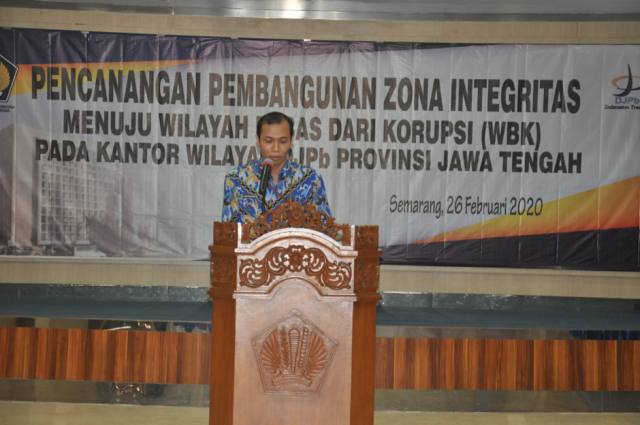 Semarang, Liputan djpb.kemenkeu.go.id/kanwil/jateng/id- Kanwil DJPb Provinsi Jawa Tengah menyelenggarakan Pencanangan Pembangunan Zona Integritas (ZI) Menuju Wilayah Bebas dari Korupsi (WBK) pada tanggal 26 Februari 2020 di Aula Gedung Keuangan Negara I Semarang. Kegiatan ini dihadiri oleh seluruh pejabat dan pegawai Kanwil DJPb Provinsi Jawa Tengah, Satuan Kerja, Pihak Perbankan, dan Mitra Kerja Kanwil DJPb Provinsi Jawa Tengah dengan tujuan mewujudkan Zona Integritas di Lingkungan Kanwil DJPb Provinsi Jawa Tengah.
