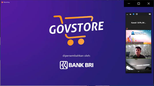 Terdapat 4 narasumber yang menyampaikan paparan, yaitu Bank BRI pusat, BNI Kanwil Semarang, Mandiri Jakarta, dan BTN Kanwil Semarang. Di awal pemaparannya, masing-masing narasumber memutar video advertorial mengenai aplikasi marketplace masing-masing, yaitu aplikasi GovStore (BRI), DigiPro (BNI), BlanjaMandiri (Mandiri), dan B-GOV VA (BTN). Masing-masing narasumber melanjutkan materi mengenai fitur-fitur aplikasi, alur proses bisnis, skema pemesanan dan pembayaran barang/jasa, dan user management-nya.
