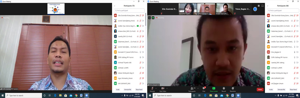 Acara diawali dengan pengantar oleh Kepala Bidang SKKI, Ahmad Juanda yang menyampaikan bahwa sosialisasi ini merupakan program Kanwil DJPb Provinsi Jawa Tengah khususnya Bidang SKKI untuk membeikan pencerahan kepada seluruh pegawai mengenai gratifikasi. Selanjutnya sambutan dan arahan sekaligus pembukaan acara sosialisasi oleh Kepala Kanwil DJPb Provinsi Jawa Tengah, Sulaimansyah menyampaikan pentingnya sosialisasi ini diadakan saat pandemi COVID-19 karena kondisi pandemi berdampak pada kebijakan Pemerintah memberikan relaksasi regulasi yang membuka risiko terjadinya KKN. Kepala Kanwil DJPb Provinsi Jawa Tengah menekankan perlunya mengedepankan integritas dalam bekerja.