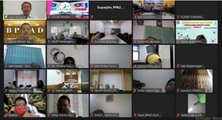 Semarang, Liputan djpb.kemenkeu.go.id/kanwil/jateng/id - Kepala Kantor Wilayah Diretorat Jenderal Perbendaharaan Negara Provinsi Jawa Tengah menyelenggarakan Forum Group Discussion (FGD) Penyaluran Insentif Nakes Covid-19 pada hari Senin tanggal 26 Oktober 2020 mulai pukul 13.00 s.d. 16.00 WIB melalui media daring zoom. Kegiatan ini merupakan tindak lanjut dari Nota Dinas Direktur Pelaksanaan Anggaran Nomor:ND-816/PB.2/2020 tanggal 29 Juni 2020 tentang Pelaksanaan Survei Online dan Penyusunan Review Tematik Efektivitas Progran Insentif Tenaga Kesehatan dalam Penanganan Covid-19. Perserta undangan dalam kegiatan FGD ini terdiri dari Kepala Dinas Kesehatan Provinsi Jawa Tengah, Para Kepala Dinas Kesehatan Kabupaten/Kota se-Jawa tengah serta para Direktur Rumah Sakit Umum Daerah yang menangani pasien covid-19. Dalam pelaksanaan acara FGD dihadiri sekitar 130 peserta yang merupakan perwakilan dari undangan sebagaimana undangan tersebut diatas.