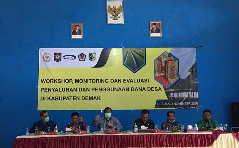 Semarang, Liputan djpb.kemenkeu.go.id/kanwil/jateng/id- Selasa, 3 November 2020, bertempat di Hotel Amantis Demak, Workshop Monitoring dan Evaluasi Penyaluran dan Penggunaan Dana Desa di Kabupaten Demak digelar, dengan peserta yang hadir secara langsung dan peserta yang mengikuti melalui media zoom di 10 kecamatan.