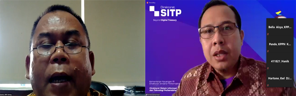 Sesi kedua, penyampaian materi oleh narasumber Farid Zamachsari, selaku Kepala Seksi Pengelolaan Sistem Informasi Eksternal I Direktorat SITP mengenai langkah sukses implementasi SAKTI, topologi SAKTI, Spesifikasi SAKTI di DC Kemenkeu, strategi transisi implementasi SAKTI, timeline SAKTI Web dan kegiatan yang sedang dan akan dilakukan di Tahun 2020. Materi terakhir disampaikan terkait Perdirjen Nomor 16 tahun 2020 tentang Hak Akses Pengguna dan Pengamanan Secara Elektronik dalam Piloting SAKTI, dimana ruang lingkup meliputi Pengeloaan Pengguna SAKTI, Pengelolaan Secara Elektronik, dan Penggunaan Pengamanan Secara Elektronik, serta Kepdirjen Nomor 264/PB/2020 tentang Pelaksanaan Penggunaan One Time Password (OTP) dalam Piloting SAKTI. Terkait penerapan implementasi OTP dalam Piloting SAKTI. Selanjutnya sesi tanya jawab, dalam sesi ini banyak satker yang menyampaikan kendala/permasalahan seputar SAKTI Web Full Module.