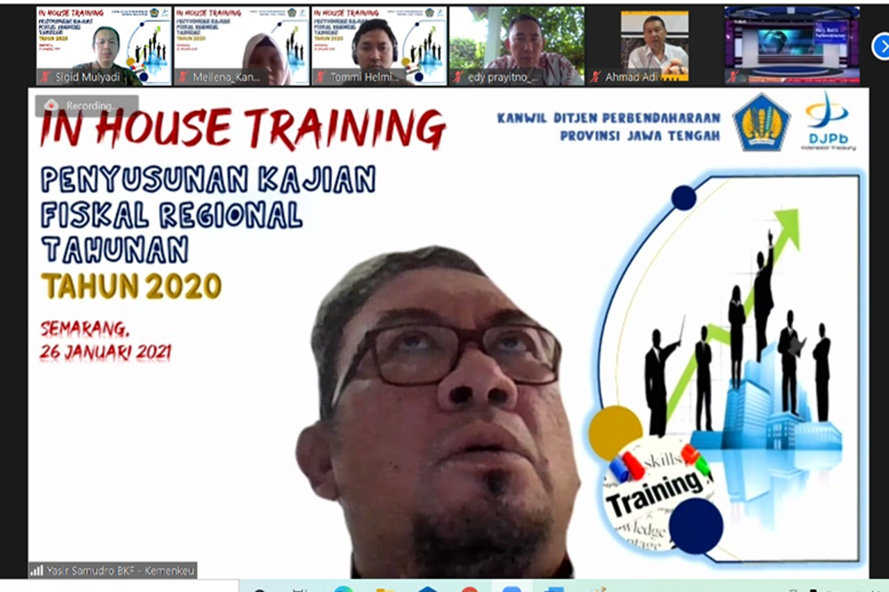 djpb.kemenkeu.go.id/kanwil/jateng/id - Dalam rangka meningkatkan kualitas dan kapasitas pegawai dalam penyusunan laporan Kajian Fiskal Regional, Kantor Wilayah Direktorat Jenderal Perbendaharaan Provinsi Jawa Tengah akan mengadakan kegiatan IHT Penyusunan Kajian Fiskal Regional Tahunan Tahun 2020. Acara dilaksanakan secara daring melalui aplikasi zoom pada hari Selasa, 26 Januari 2021 mulai pukul 08.30 WIB sampai dengan pukul 12.00 WIB, dengan narasumber yang handal dari Badan Kebijakan Fiskal, Bapak Yasir Niti Samudro (Analis Kebijakan Ahli Madya), dan Bapak Tommi Helmiwan (Kasi Konsolidasi Pelaksanaan Anggaran II, Dit PA).