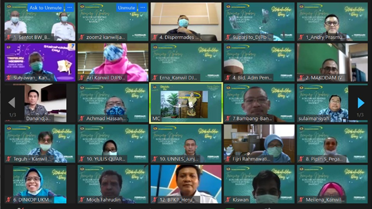 djpb.kemenkeu.go.id/kanwil/jateng/id - Sebagai rangkaian dari peringatan Hari Bakti Perbendaharaan Tahun 2021, Kanwil DJPb Provinsi Jawa Tengah menggelar acara Stakeholder Day Kanwil DJPb Jateng 2021 secara virtual . Stakeholder Day bertema “Kokohkan Sinergi Untuk Jateng Bangkit” diselenggarakan sebagai bentuk apresiasi kepada para stakeholder yang telah bersinergi dan saling mendukung dalam pelaksanaan APBN dan tugas-tugas mengawal program pemulihan ekonomi nasional.