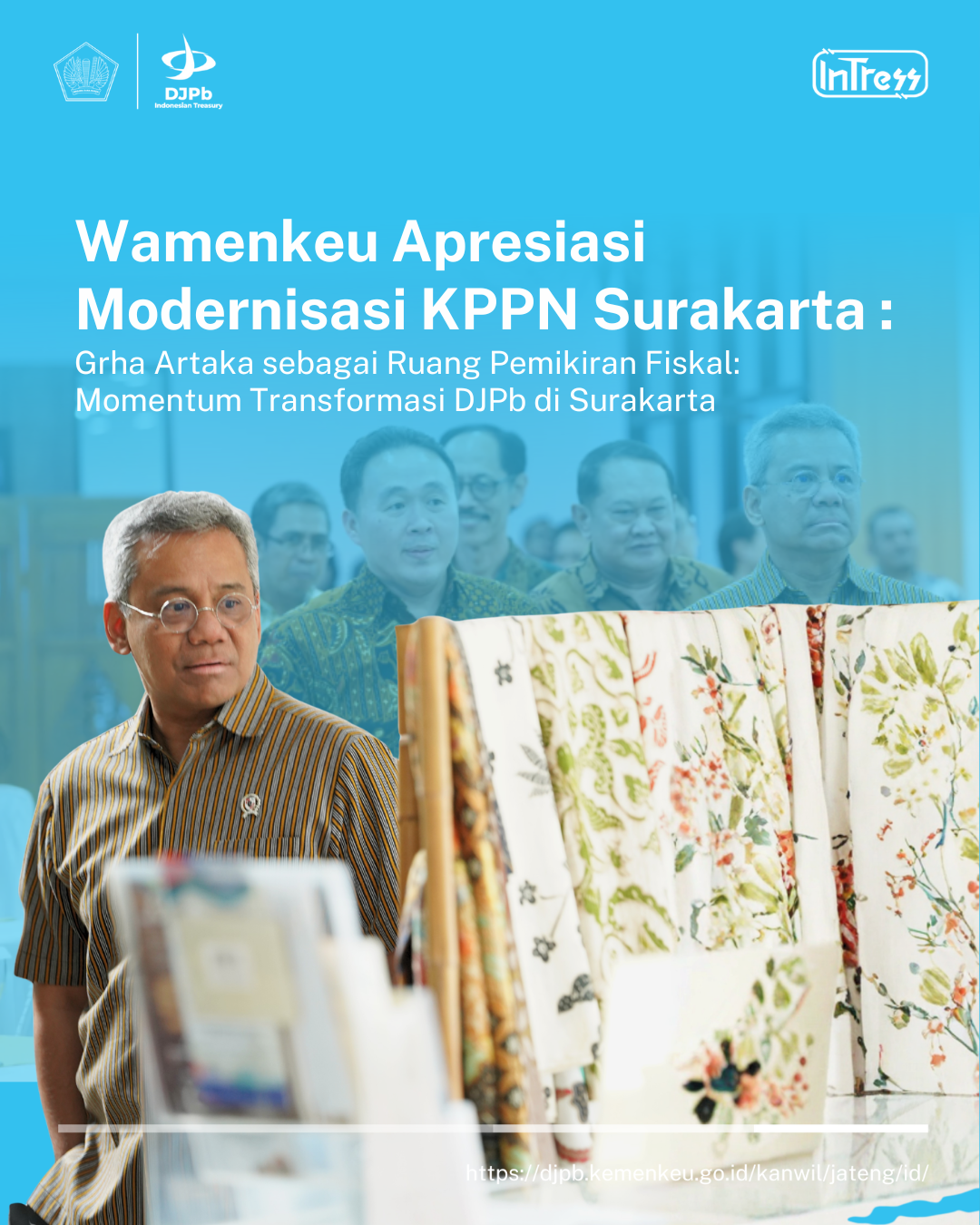 Dalam kunjungan tersebut, Wamenkeu memberikan apresiasi atas transformasi fasilitas KPPN Surakarta yang kini tampil semakin modern dan nyaman. Salah satu wujud transformasi tersebut adalah hadirnya Grha Artaka sebagai Pusat Studi Perbendaharaan Negara Surakarta, yang diharapkan dapat menjadi pusat pengembangan kajian dan diskusi kebijakan fiskal.
