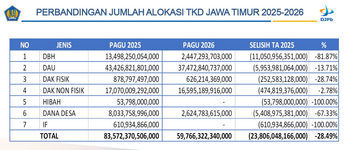 Kepala Kanwil DJPb Jawa Timur, Saiful Islam, menyampaikan, pengelolaan keuangan daerah diharapkan tidak berhenti pada aspek tata kelola administratif, tetapi mampu menjadi instrumen yang mendukung agenda pembangunan yang lebih luas. Program-program daerah diharapkan berkontribusi pada penguatan ketahanan pangan, pelestarian lingkungan, serta peningkatan kesejahteraan petani dan masyarakat secara umum.