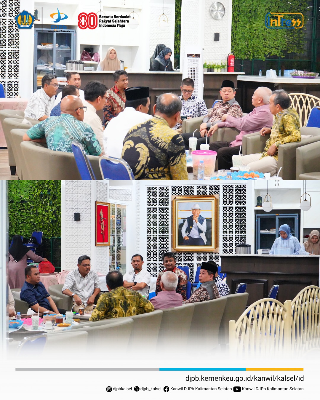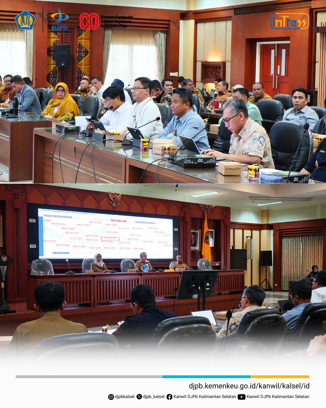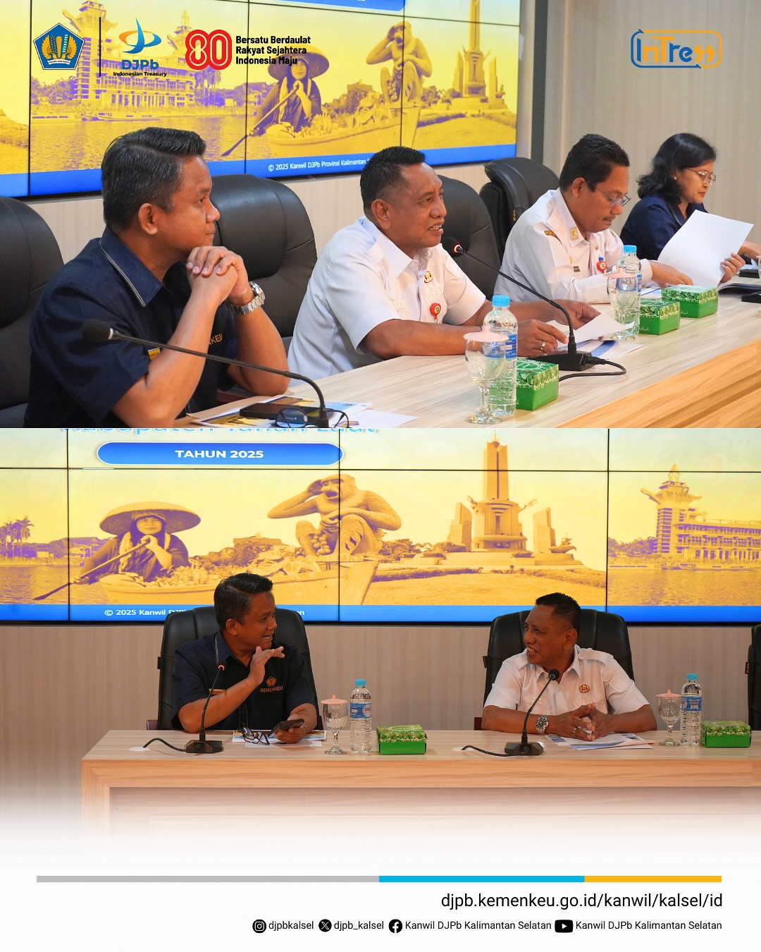 Dalam upaya optimalisasi peran Kementerian Keuangan di Daerah, Kantor Wilayah Direktorat Jenderal Perbendaharaan (DJPb) Provinsi Kalimantan Selatan bersama Kantor Wilayah Direktorat Jenderal Kekayaan Negara (DJKN) Kalimantan Selatan dan Tengah melaksanakan audiensi dengan Pemerintah Kabupaten Tapin. Kegiatan ini mendapat sambutan hangat dari Bupati Tapin beserta Wakil Bupati, yang menunjukkan komitmen Pemerintah Kabupaten Tapin dalam membangun komunikasi aktif dan kolaboratif dengan instansi vertikal Kementerian Keuangan. (13/08)