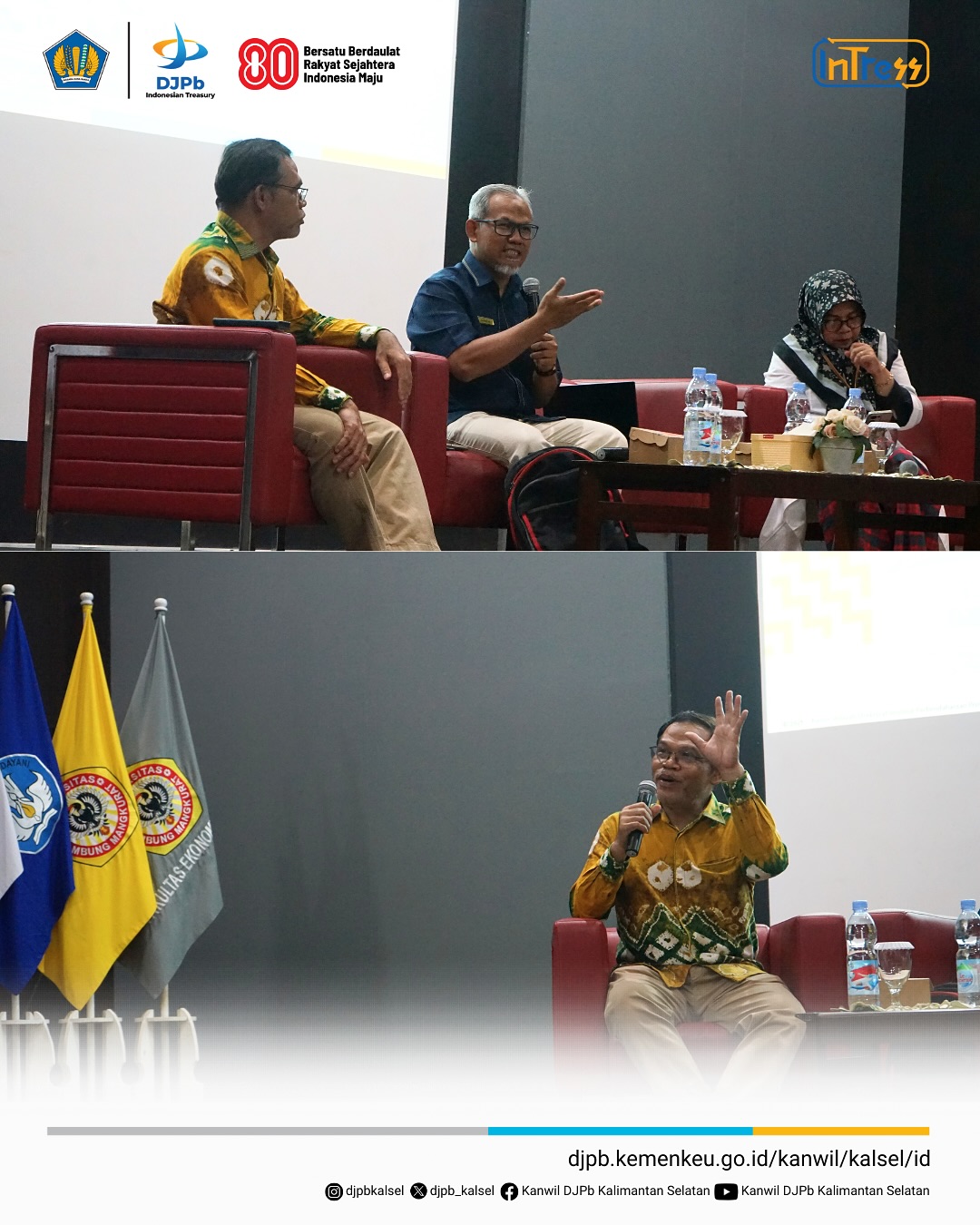 Pada Rabu (27/08), Kanwil DJPb Provinsi Kalimantan Selatan menyelenggarakan Diseminasi Kajian Fiskal Regional (KFR) Triwulan II 2025 yang bertempat di Lecture Theatre Fakultas Ekonomi dan Bisnis Universitas Lambung Mangkurat. Kegiatan ini dilaksanakan sebagai bagian dari peran Kanwil DJPb Kalsel selaku Regional Chief Economist (RCE) dalam menyediakan kajian yang bermanfaat bagi pemangku kepentingan dan masyarakat luas.