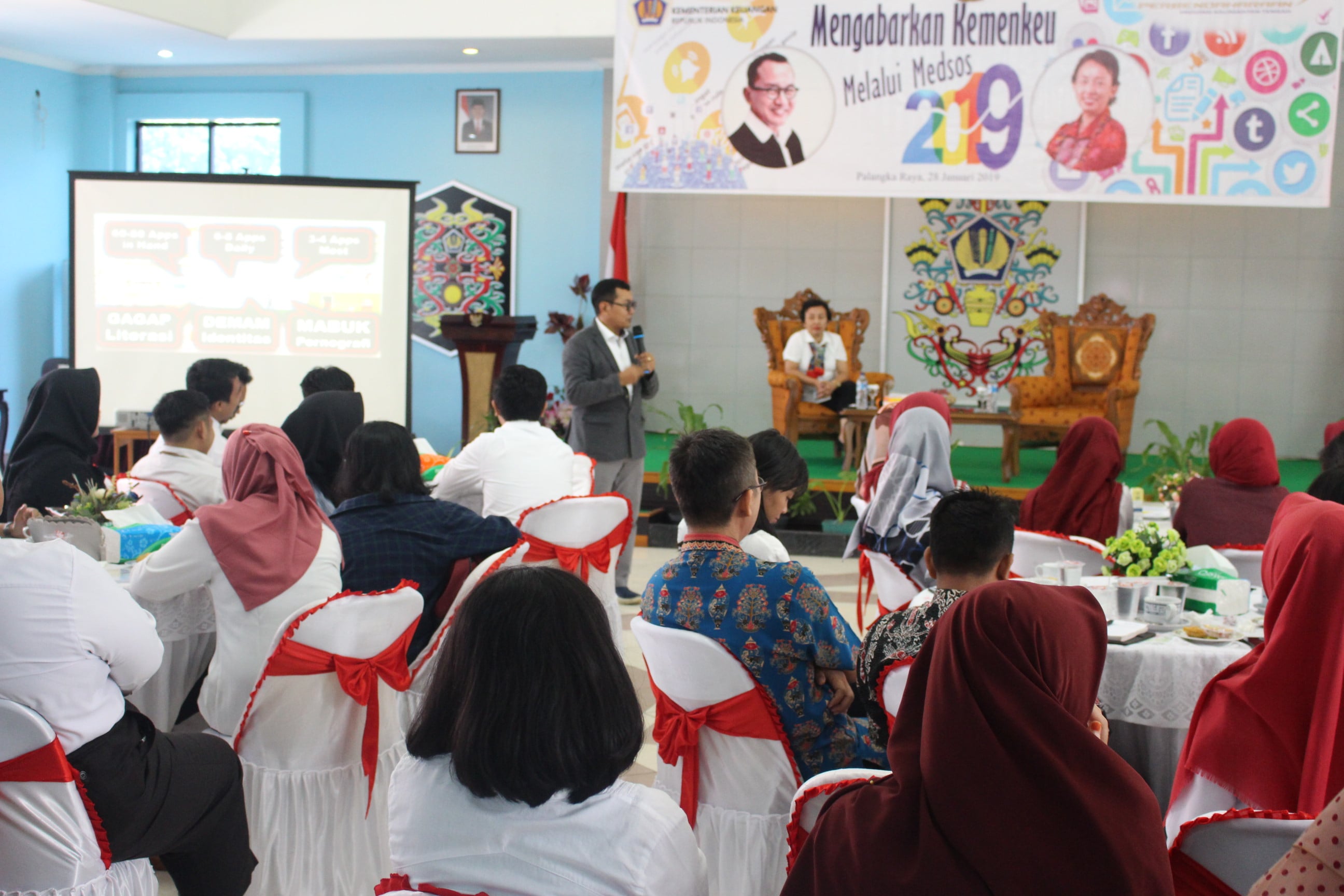 Sebagai pengantar, moderator menyampaikan pesan Menteri Keuanga Sri Muyani, bahwa "Kementerian Keuangan sebagai institusi pengelola keuangan negara, memiliki reputasi, image di masyarakat bahwa kita memiliki tugas yang penting. Laksanakan dengan baik, penuh tanggungjawab dan profesional, dengan menjungjung tinggi Nilai-Nilai Kementerian Keuangan”. Selain itu moderator yang juga Kepala Kanwil DJPb Provinsi Kalimantan Tengah ini mengharapkan, Kemenkeu Muda mampu menyampaikan informasi yang benar, jujur dan akuntabel mengenai kinerja kementerian keuangan didaerah sesuai tugas dan fungsinya masing-masing melalui media sosial.