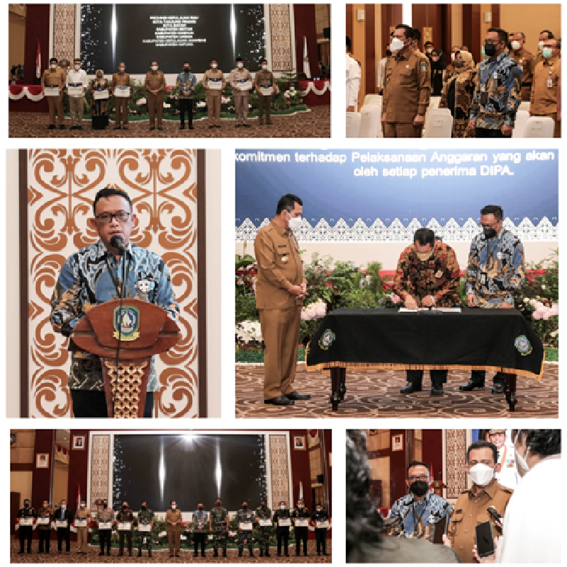 Pelaksanaan kegiatan penyerahan DIPA dan TKKD tersebut dilaksanakan secara hybrid, yaitu daring dan luring. hal ini dilakukan dalam rangka antisipasi pencegahan penyebaran pandemi Covid-19. Dari total 318 DIPA yang diserahkan kepada para pimpinan satuan kerja Kementerian/Lembaga (K/L), dilakukan penyerahan secara langsung secara simbolis kepada 13 satuan kerja yang mewakili unsur Forkompinda, Kantor Pusat Kementerian/Lembaga, dan Kantor Daerah Kementerian/Lembaga dan Penyerahan DIPA kepada satker lainnya dilakukan secara virtual dalam kesempatan yang sama. Sedangkan penyerahan Daftar Alokasi Transfer Ke Daerah dan Dana Desa Tahun Anggaran 2022 disampaikan langsung oleh Gubernur kepada 7 Bupati/Walikota.
