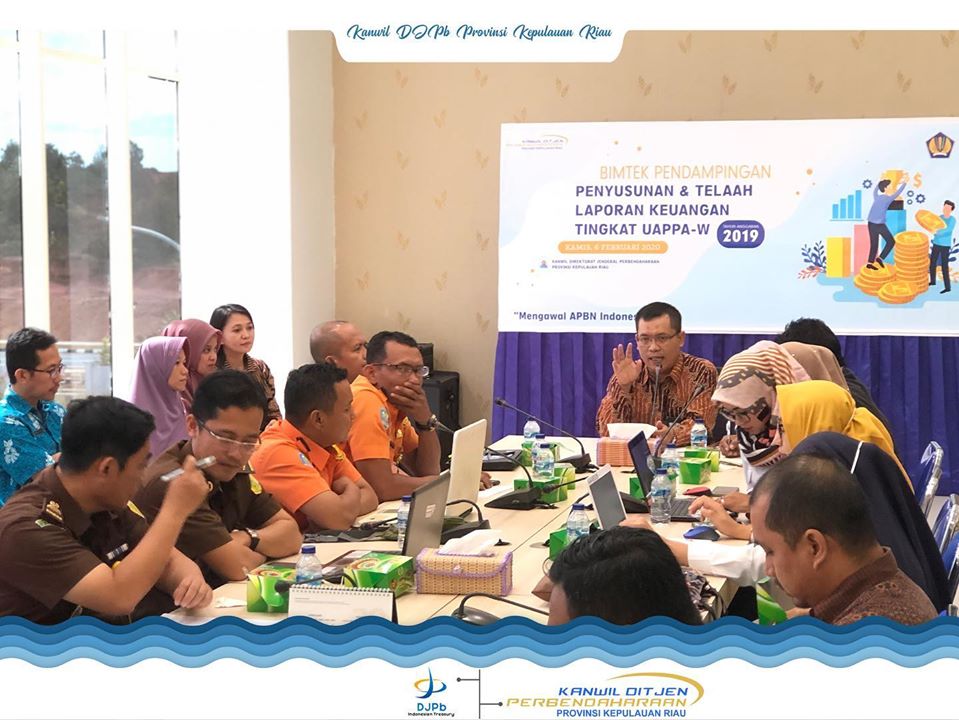 Kanwil DJPb Provinsi Kepulauan Riau melaksanakan Bimtek Pendampingan Penyusunan LK Tingkat UAPPA-W Tahun Anggaran 2019, 6 Februari 2020, di Ruang Rapat Lantai 2 Gedung Kanwil Ditjen Perbendaharaan Provinsi Kepulauan Riau yang beralamat di Jl. Sultan Muhammad Syah, Dompak, Tanjungpinang.