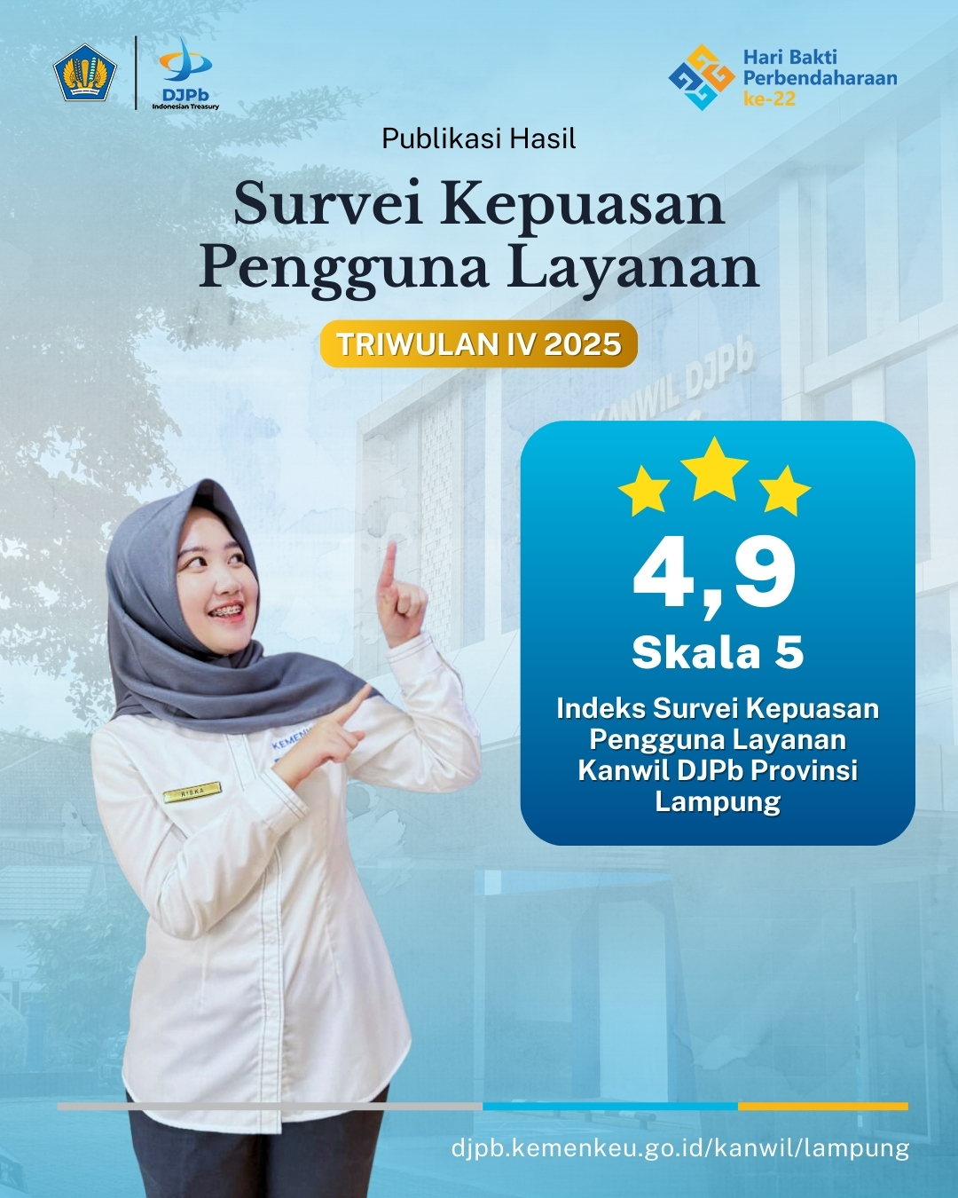 Kanwil DJPb Provinsi Lampung menyampaikan apresiasi dan terima kasih kepada seluruh responden atas partisipasi dan kepercayaan yang telah diberikan. Setiap masukan dan saran yang disampaikan menjadi bahan evaluasi sekaligus dorongan bagi peningkatan kualitas pelayanan di masa mendatang.
