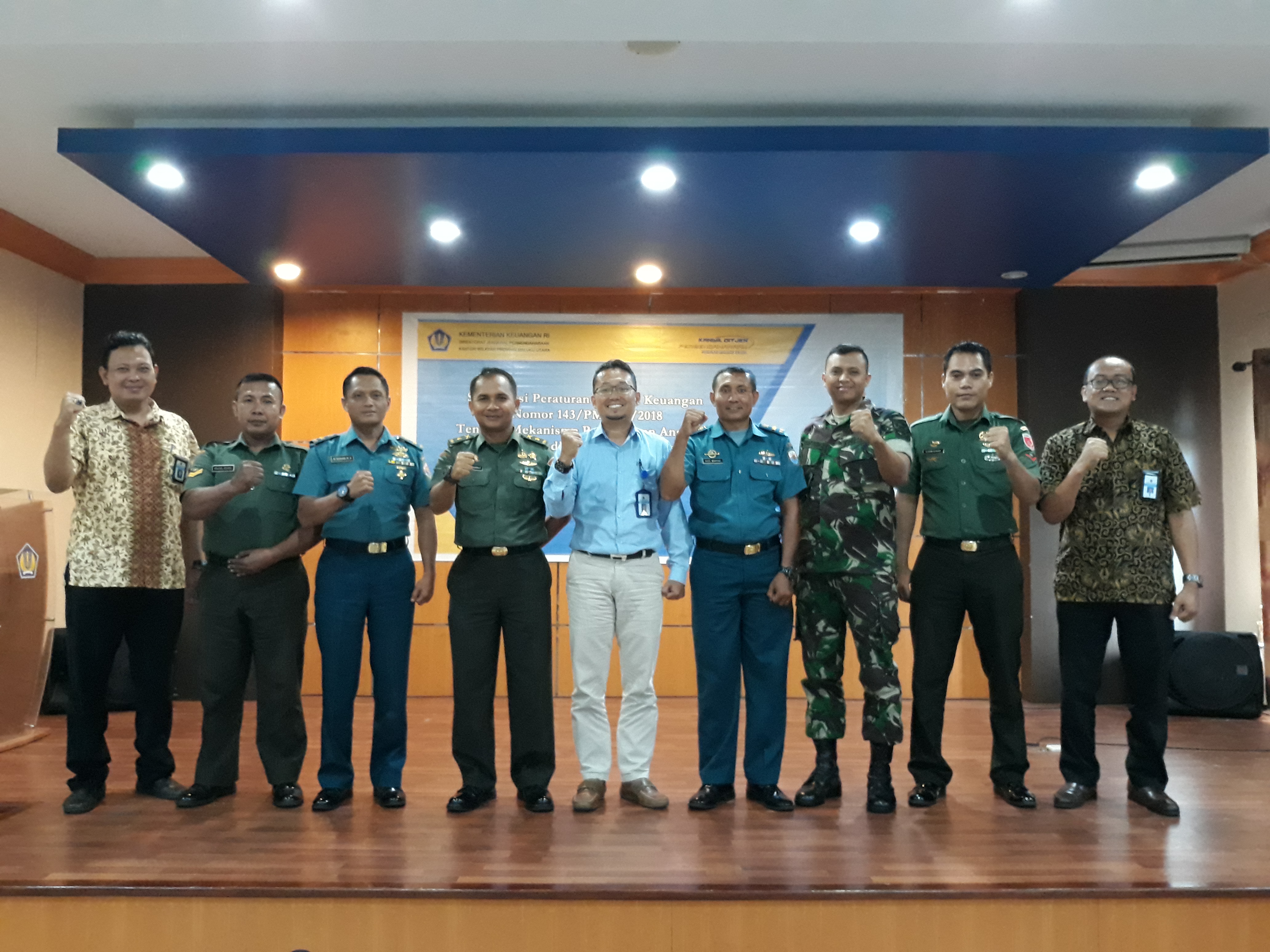 Bertempat di Aula Kanwil Ditjen Perbendaharaan Provinsi Maluku Utara, Kamis 20 Desember 2018 dilaksanakan sosialisasi tentang mekanisme pelaksanaan anggaran belanja negara pada Kementerian Pertahanan dan Tentara Nasional Indonesia. Kegiatan tersebut dihadiri para Kuasa Pengguna Anggaran dan Pejabat Pembuat Komitmen satker Korem 152/Babullah, LANAL Ternate, LANAL Ternate, LANAL Morotai, dan LANUD Leo Wattimena.