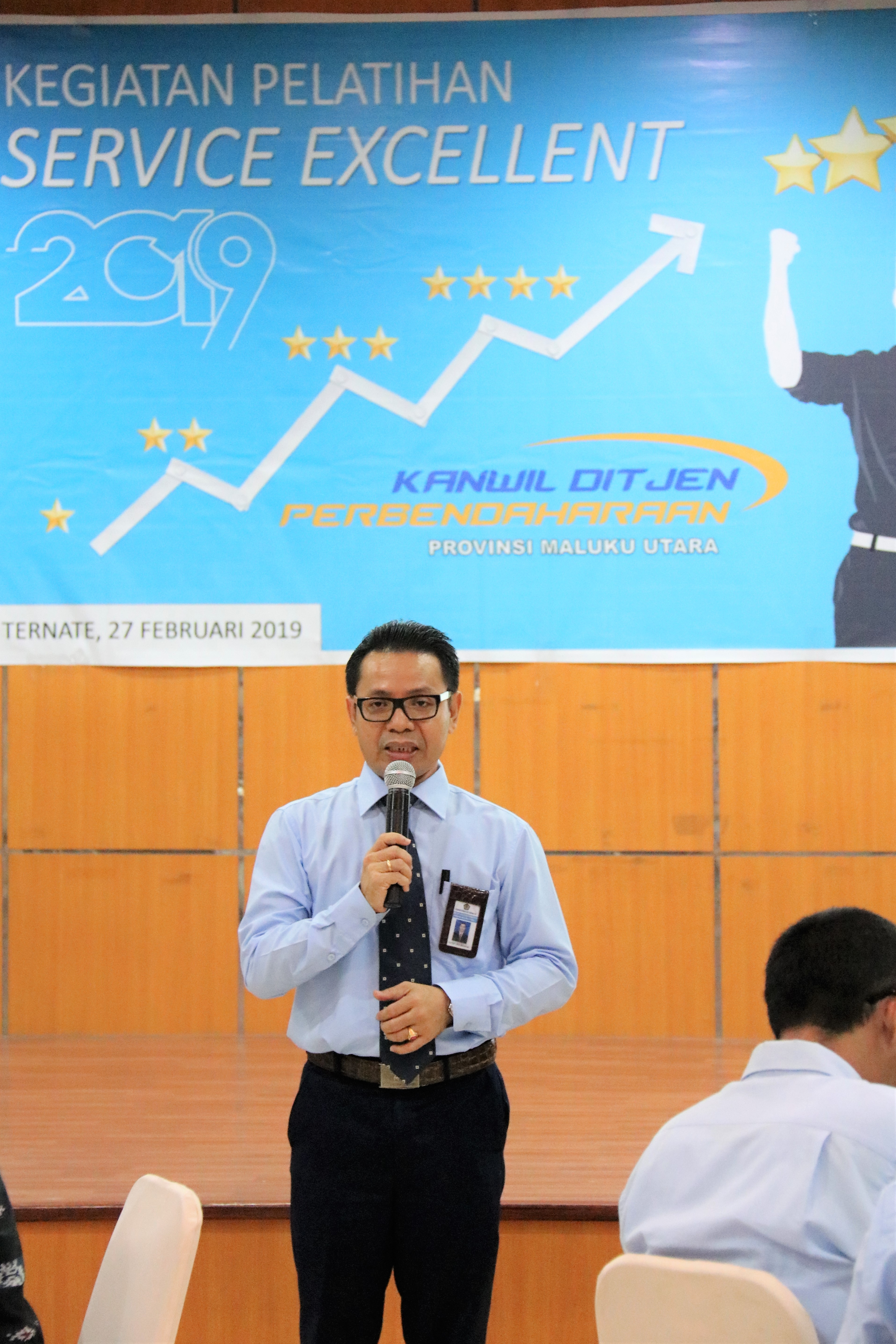 I Ketut Oka Widiasa selaku Pelaksana Tugas Kakanwil DJPb Maluku Utara dalam sambutannya menyampaikan bahwa tahun ini Kanwil DJPb Maluku Utara memiliki program prioritas yaitu pembangunan zona integritas menuju Wilayah Bebas Korupsi/ Wilayah Birokrasi Bersih Melayani (WBK/WBBM). Untuk mengikuti program tersebut maka kualitas layanan yang dimiliki harus terus ditingkatkan, karena salah satu parameter penilaian adalah kepuasan pengguna layanan. “Untuk itu, salah satu upaya yang terus dilakukan adalah secara berkala memberikan pelatihan kepada seluruh pegawai termasuk petugas front office dan petugas keamanan sebagai jajaran terdepan dalam melayani stakeholder” terang Oka.