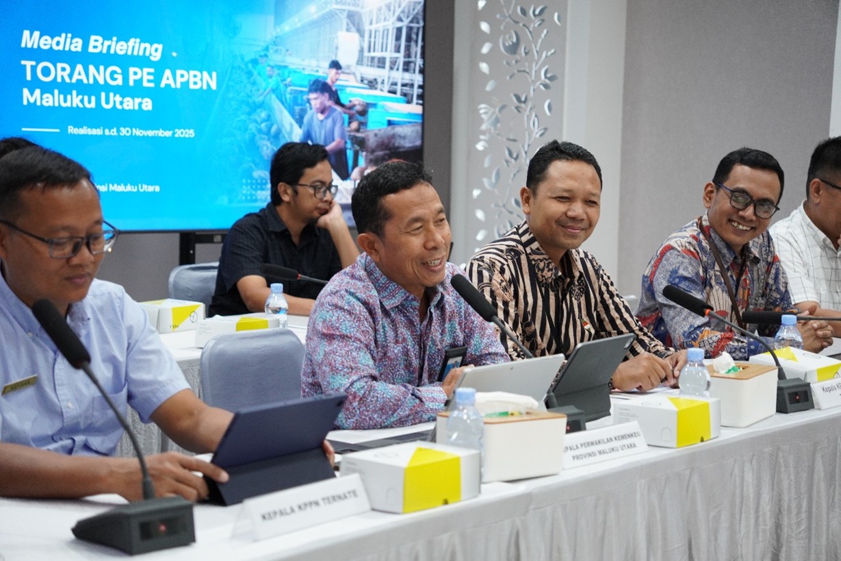 Ternate, 23 Desember 2025 – Perwakilan Kementerian Keuangan Provinsi Maluku Utara kembali menggelar media briefing rutin “Torang Pe APBN” edisi November 2025 pada Selasa (23/12). Kegiatan yang dilaksanakan secara hybrid ini berlangsung di Aula Kanwil DJPb Provinsi Maluku Utara dan dihadiri oleh pimpinan instansi vertikal Kementerian Keuangan Maluku Utara serta perwakilan media lokal.