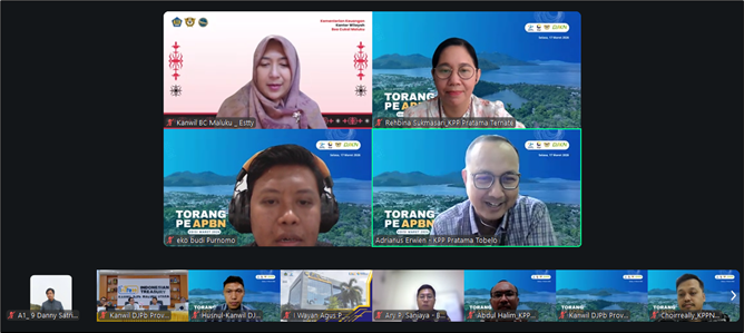 Ternate, 17 Maret 2026 – Perwakilan Kementerian Keuangan Provinsi Maluku Utara kembali menggelar media briefing rutin “Torang Pe APBN” edisi Bulan Maret Tahun 2026 pada Selasa (17/03). Kegiatan ini dilaksanakan secara daring dan disiarkan melalui Ms.Teams dan kanal Youtube Kanwil DJPb Provinsi Maluku Utara serta dihadiri oleh pimpinan instansi vertikal Kementerian Keuangan di Maluku Utara.