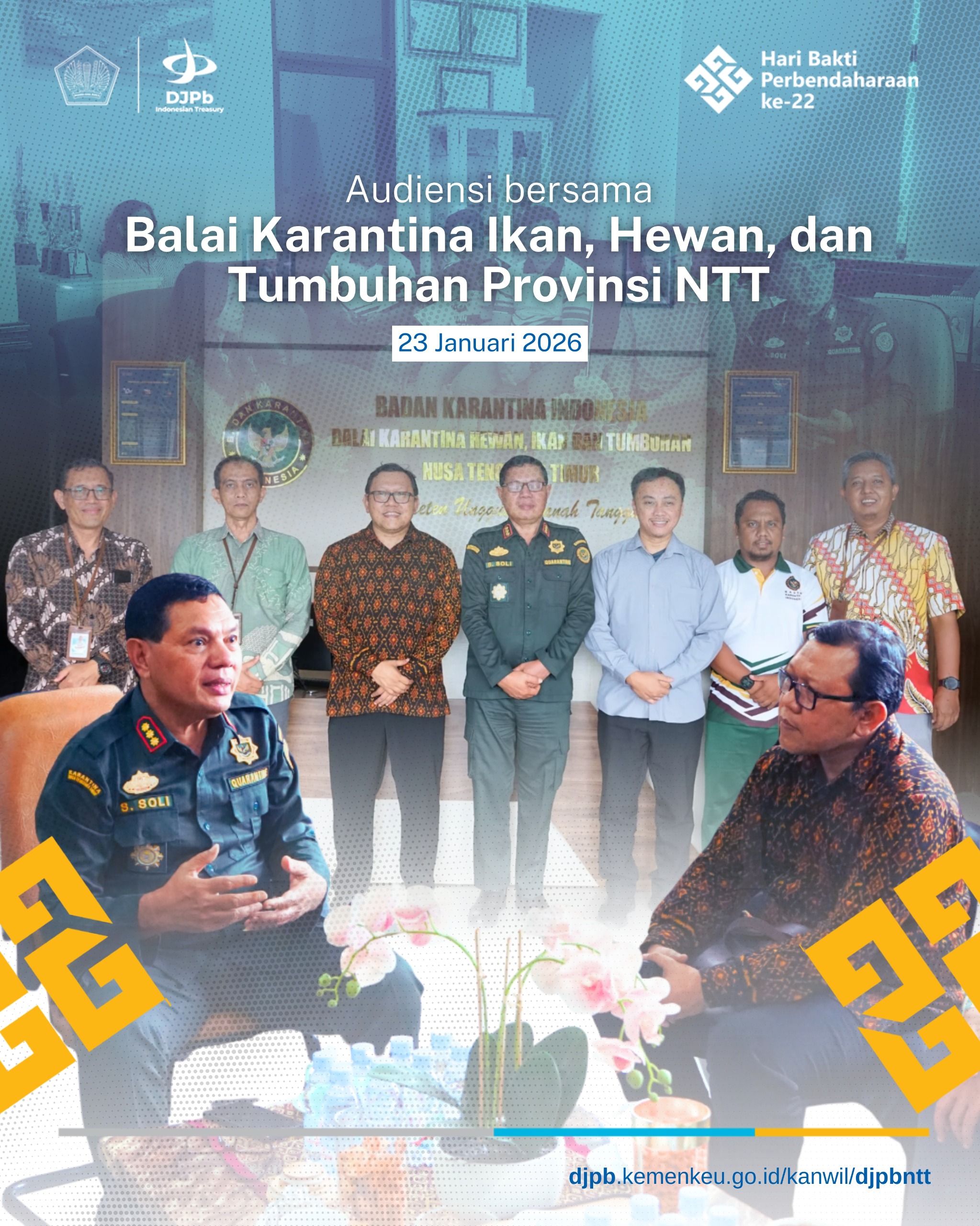 Kanwil DJPb Provinsi NTT melaksanakan audiensi bersama Balai Karantina Ikan, Hewan, dan Tumbuhan Provinsi NTT sebagai bagian dari upaya memperkuat ekosistem ekspor daerah dan mendorong pertumbuhan ekonomi Nusa Tenggara Timur.
