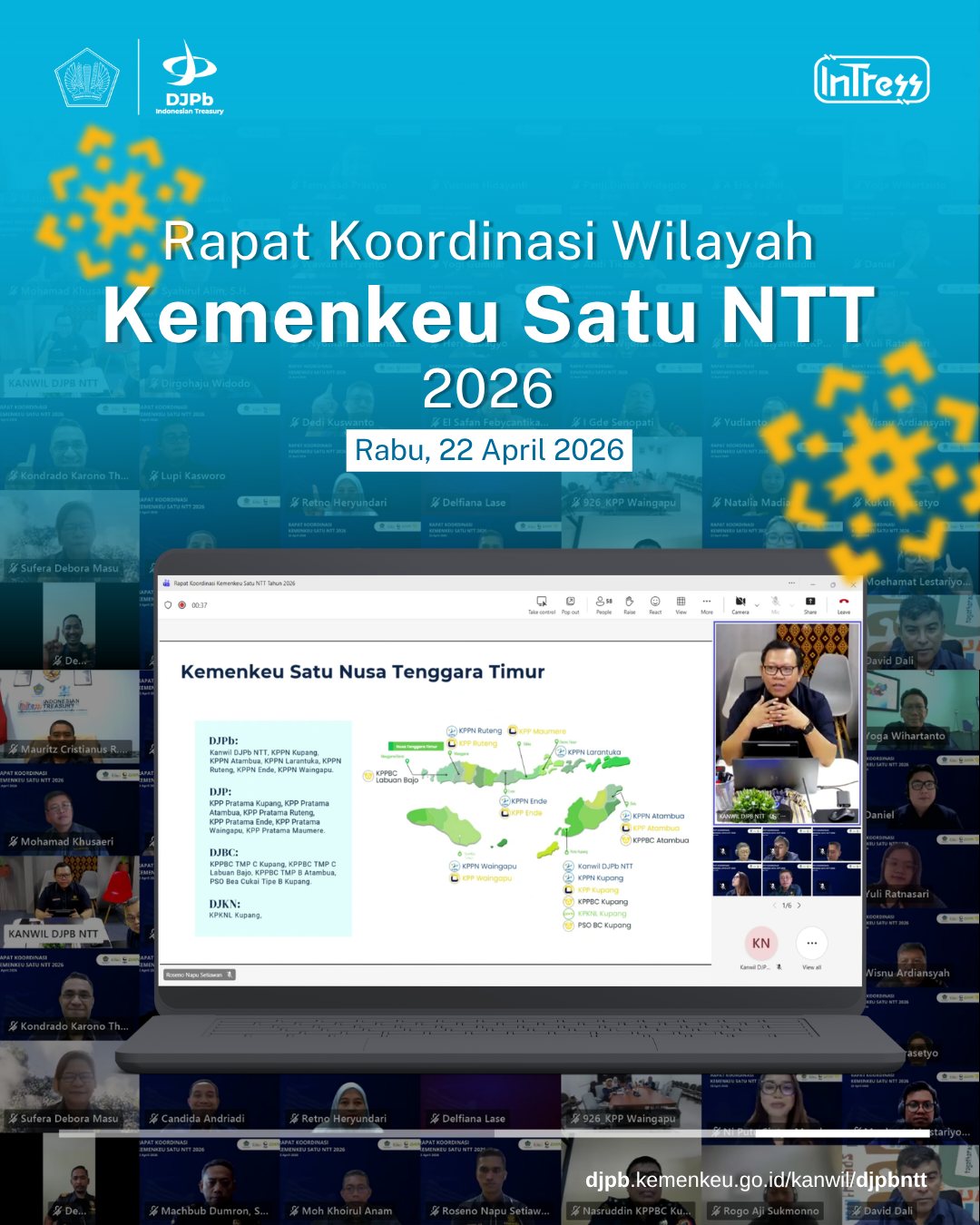 Dalam rangka memperkuat koordinasi dan sinergi antarunit vertikal Kementerian Keuangan, Kanwil DJPb Provinsi NTT mengikuti Rapat Koordinasi Sekretariat Bersama Kemenkeu Provinsi NTT yang dilaksanakan pada Rabu (22/04) secara daring.