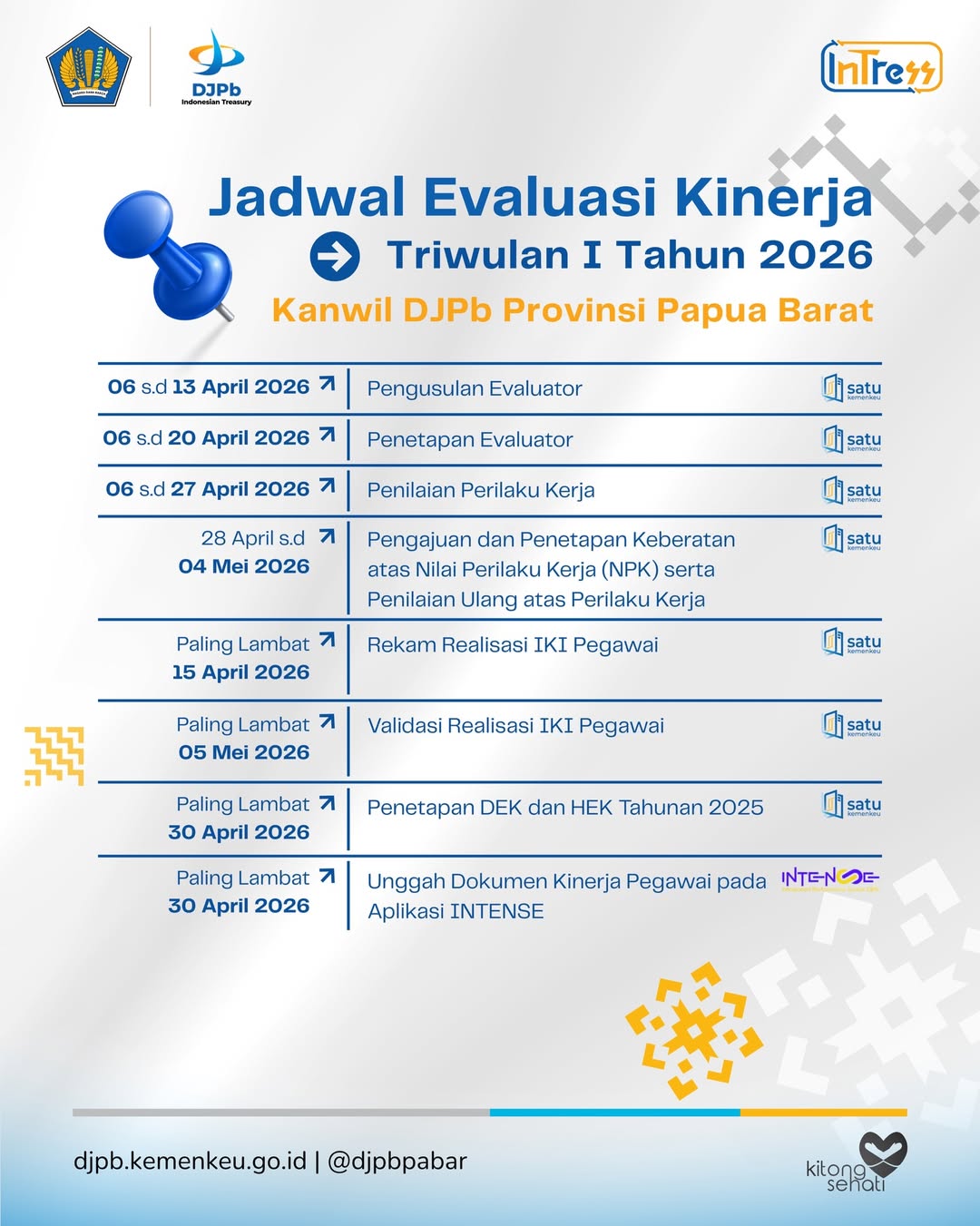 Triwulan I menjadi momen penting untuk refleksi dan penguatan kinerja. Kanwil DJPb Papua Barat melaksanakan evaluasi kinerja sebagai langkah memastikan setiap capaian kerja tetap on track dan memberi hasil terbaik.