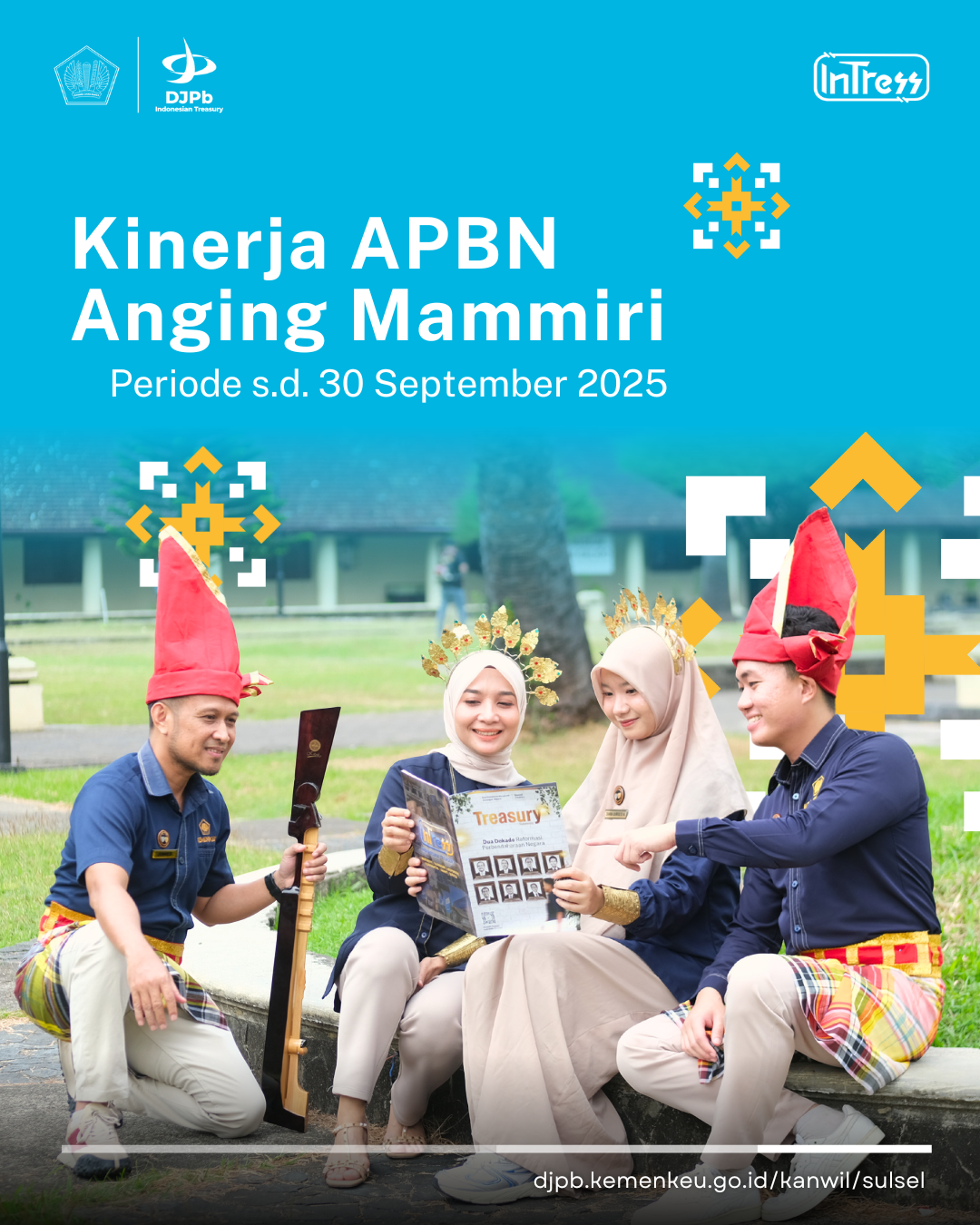 Kantor Perwakilan Kementerian Keuangan Provinsi Sulawesi Selatan menggelar konferensi pers untuk merilis kinerja APBN regional Sulawesi Selatan periode s.d. 30 September 2025 yang diselenggarakan pada hari Rabu, 29 Oktober 2025 di GKN II Makassar dan dapat disaksikan via Live Youtube melalui tautan t.kemenkeu.go.id/APBNSulsel2025.