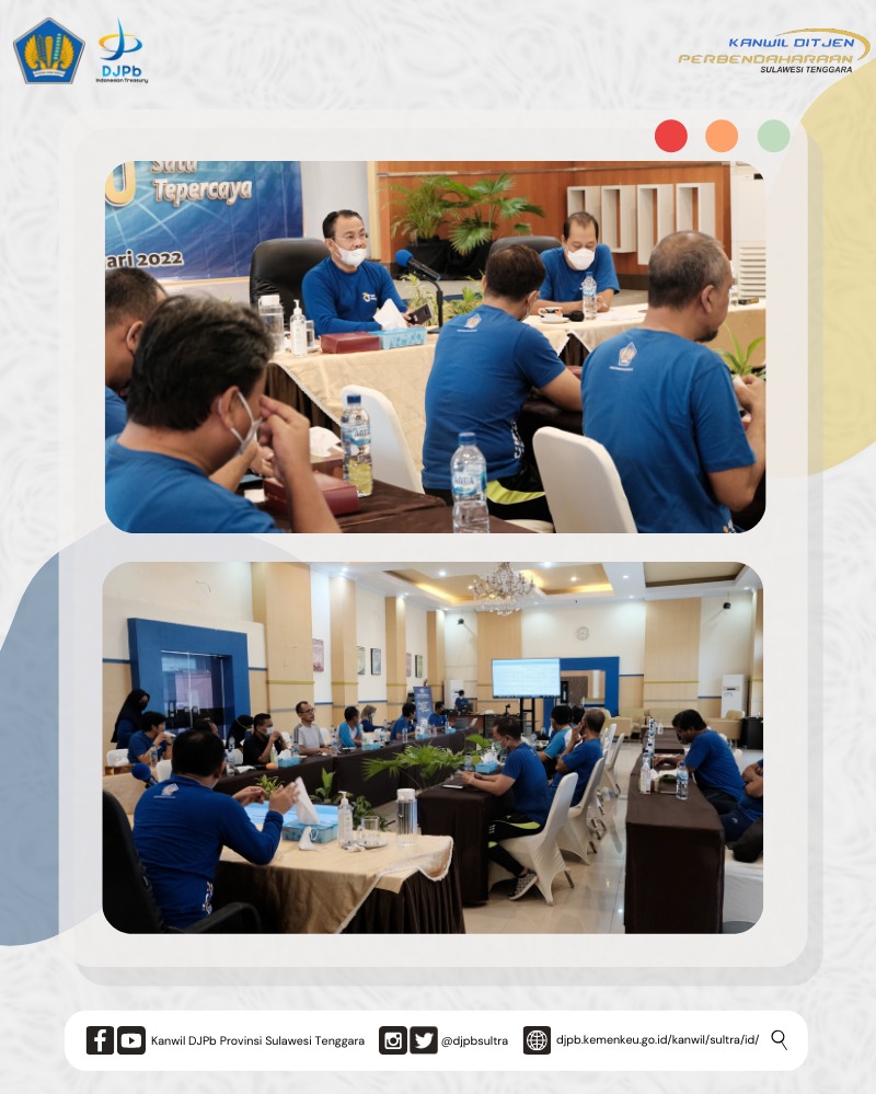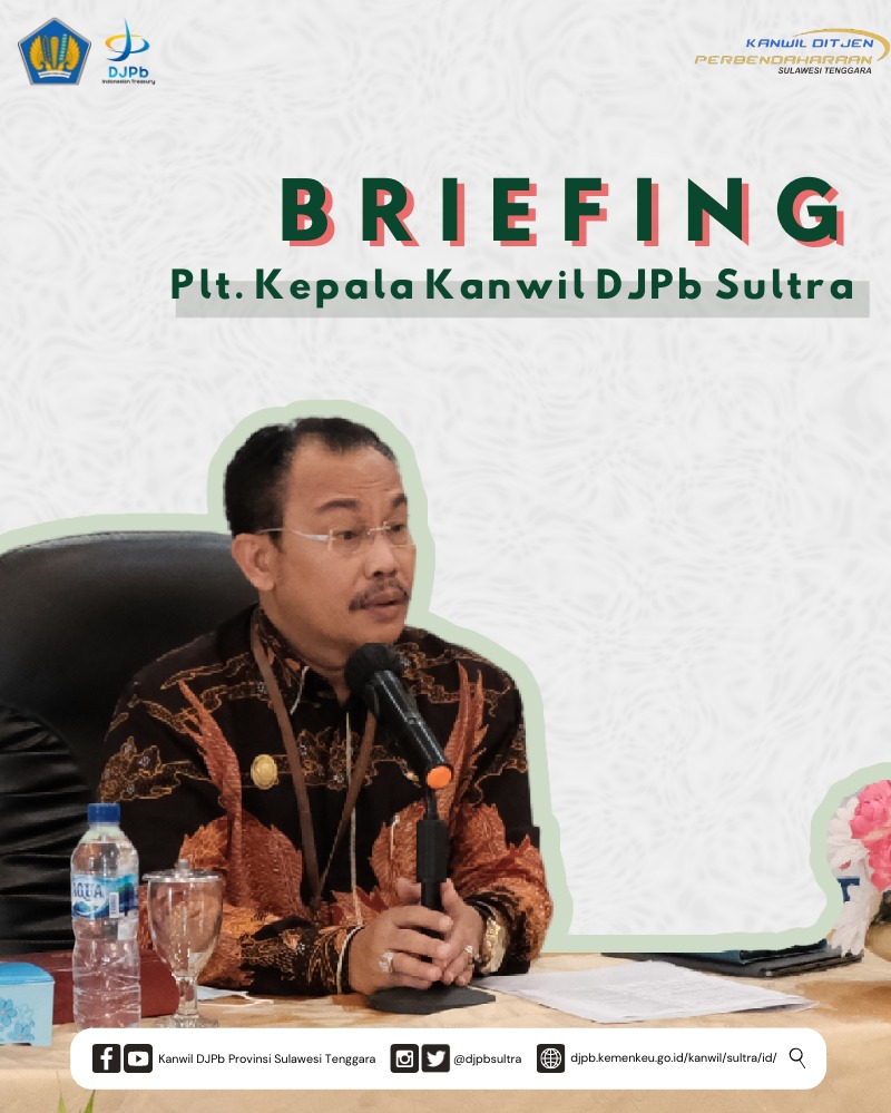 Rabu (2/2), Plt. Kepala Kantor Wilayah Direktorat Jenderal Perbendaharaan Provinsi Sulawesi Tenggara, Bapak Syaiful, melakukan briefing kepada seluruh jajaran Pegawai Kanwil DJPb Provinsi Sulawesi Tenggara. Dalam briefing tersebut, Plt. Kakanwil DJPb Prov. Sultra menyampaikan pentingnya '4-AS' dalam menjalankan pekerjaan sebagai Insan Perbendaharaan. '4-AS' tersebut adalah Kerja KerAS, Kerja CerdAS, Kerja IkhlAS, dan Kerja TuntAS.
