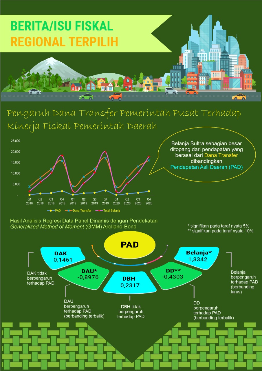 Transfer pemerintah pusat ke daerah men-discourage pemda untuk mengumpulkan PAD-nya dan menciptakan fenomena “Flypaper Effect”. Berdasarkan analisis Generalized Methode Moment (GMM), diketahui bahwa transfer daerah berupa Dana Alokasi Umum dan Dana Desa memberikan pengaruh kepada PAD namun dengan pengaruh yang negatif, sementara jenis transfer lain tidak memberikan pengaruh pada PAD.
