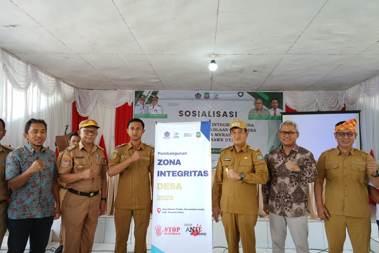 Sebagai wujud dukungan, KPPN Kendari menyerahkan penghargaan kepada Kepala Desa Muara Tinobu yang telah berkomitmen mendukung pembentukan koperasi desa, sekaligus menyerahkan banner pencanangan Zona Integritas Desa.