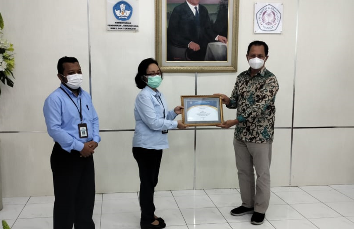 - Bertempat di Rektorat Universitas Sam Ratulangi pada tanggal 25 Agustus 2021 dilaksanakan penyerahan piagam penghargaan peringkat 3 kategori kecil kepada Universitas Sam Ratulangi. Penyerahan piagam dilakukan oleh Kepala Kanwil DJPb Provinsi Sulawesi Utara Ratih Hapsari Kusumawardani didampingi Kepala Bidang PAPK diterima Wakil Rektor 2 Bidang Umum dan Keuangan Unversitas Sam Ratulangi Ronny Maramis.