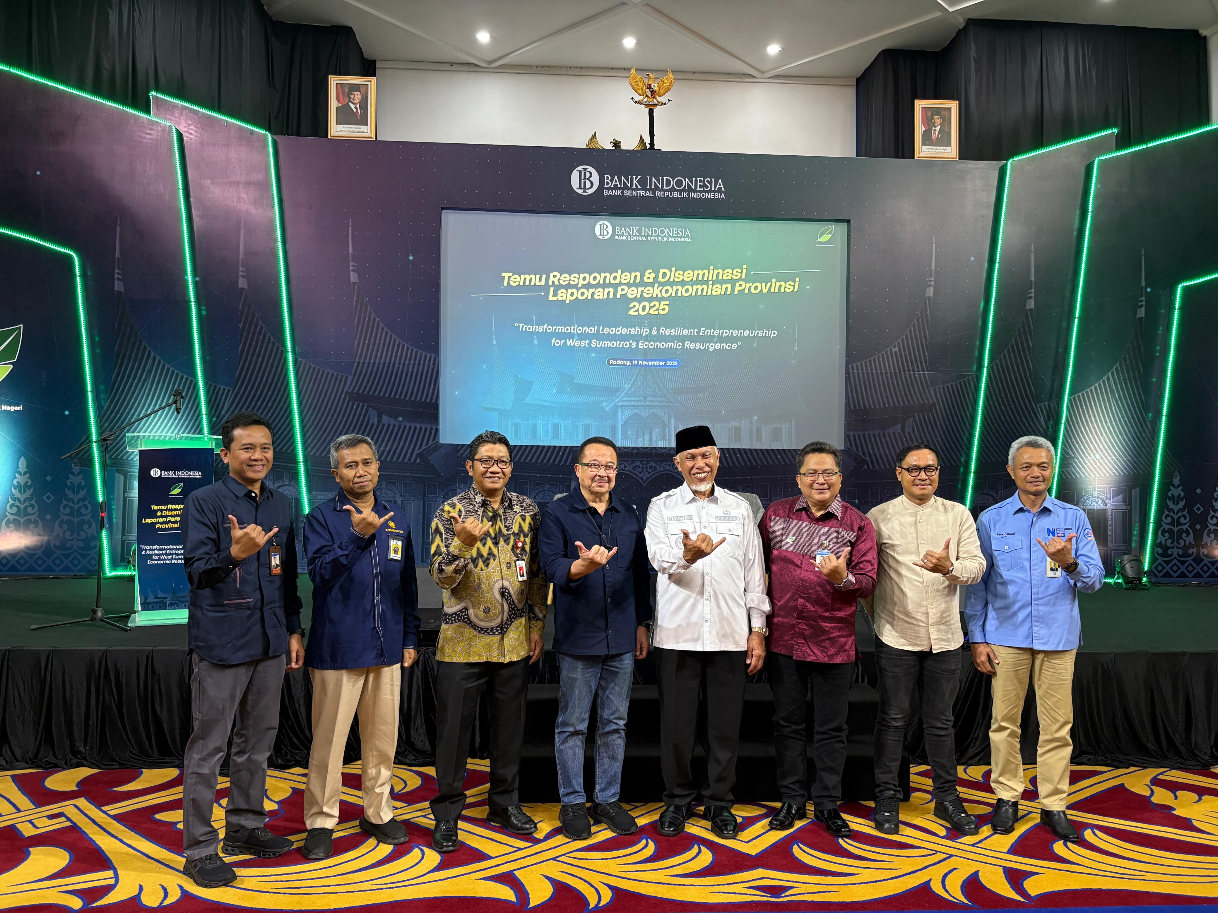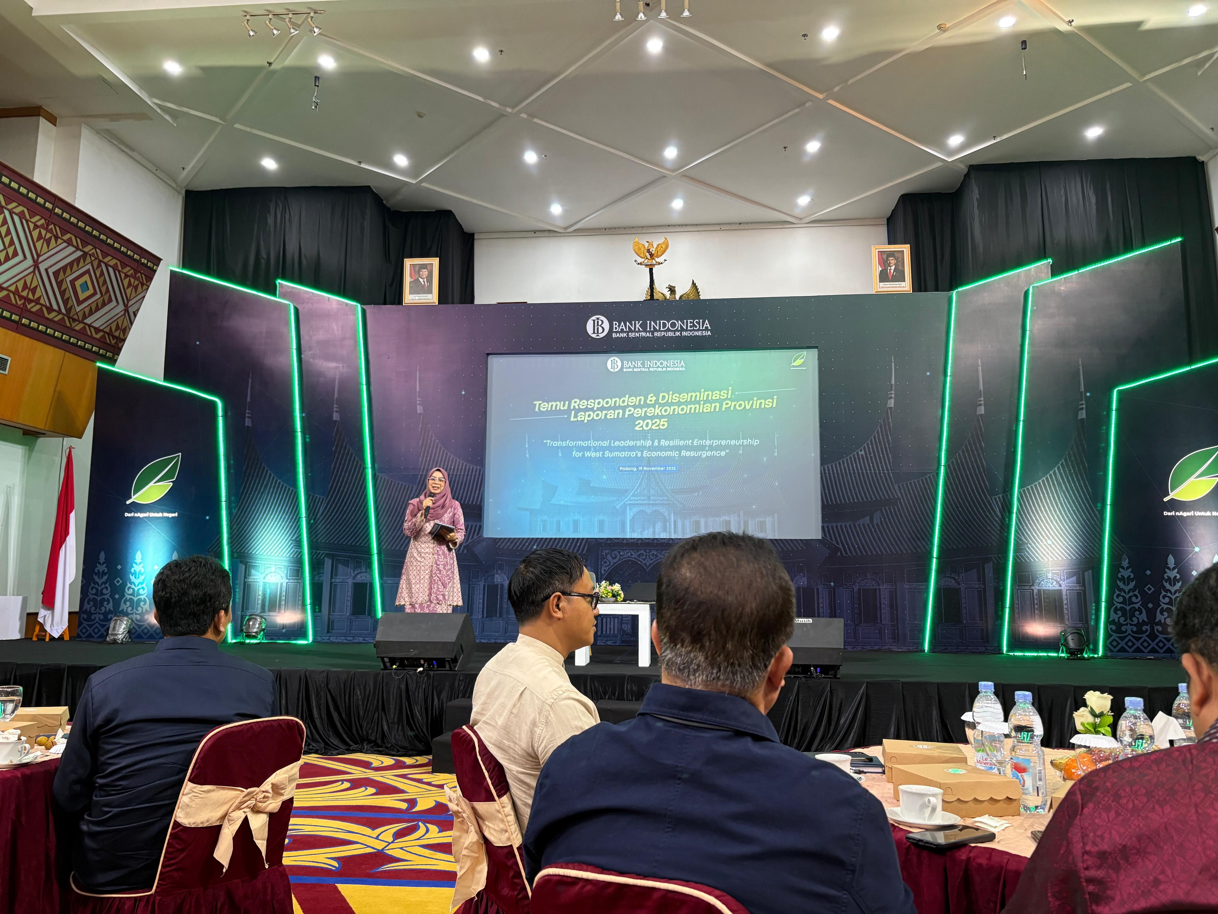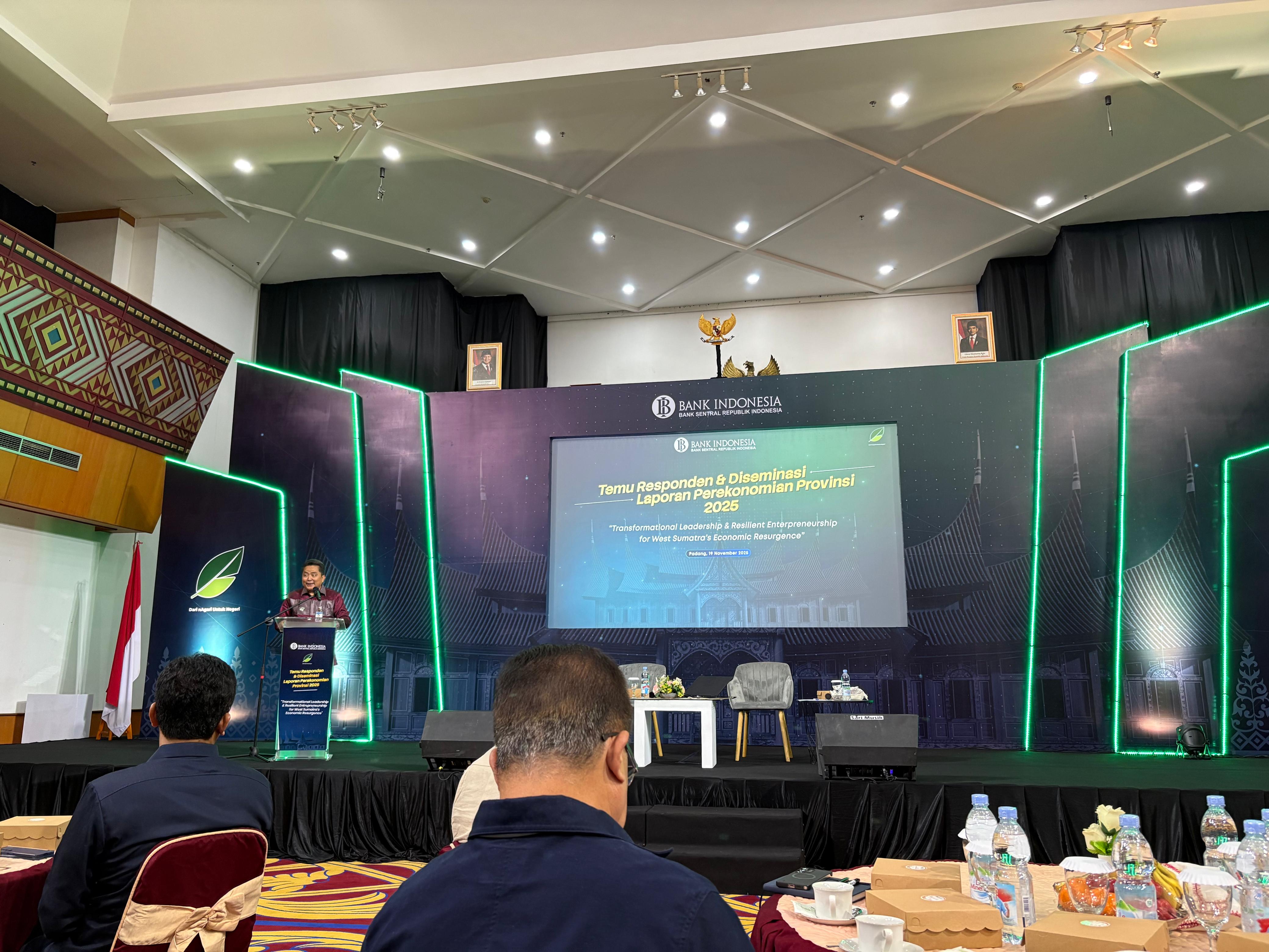 Padang, 19 November 2025 – Kantor Wilayah Direktorat Jenderal Perbendaharaan Provinsi Sumatera Barat menghadiri Kegiatan Temu Responden dan Diseminasi Laporan Perekonomian Provinsi 2025 yang diselenggarakan oleh Bank Indonesia Perwakilan Provinsi Sumatera Barat di Aula Anggun Nan Tongga. Kegiatan yang mengusung tema “Transformational Leadership & Resilient Entrepreneurship for West Sumatera's Economic Resurgence” ini menjadi forum strategis untuk menyampaikan perkembangan dan outlook perekonomian Sumatera Barat serta memperkuat sinergi kebijakan antara otoritas fiskal dan moneter bersama berbagai pemangku kepentingan.