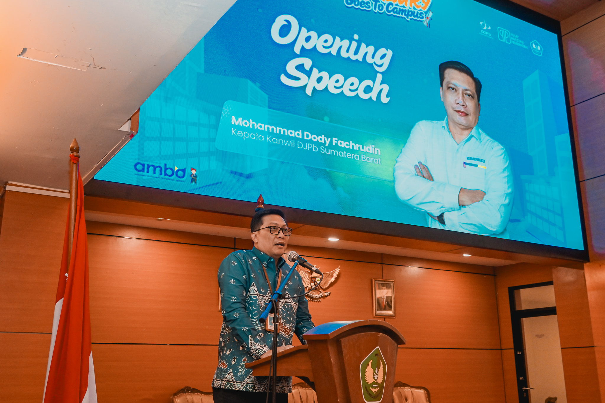 Padang, 18 Desember 2025 - Kantor Wilayah Direktorat Jenderal Perbendaharaan (Kanwil DJPb) Provinsi Sumatera Barat kembali menyelenggarakan kegiatan Treasury Goes to Campus (TGC) sebagai bagian dari upaya meningkatkan literasi fiskal generasi muda. Kegiatan ini digelar di Convention Hall Kampus 1 Universitas Bung Hatta, Kamis (18/12), dengan mengangkat tema “Peran Fiskal dalam Mendukung UMKM”.