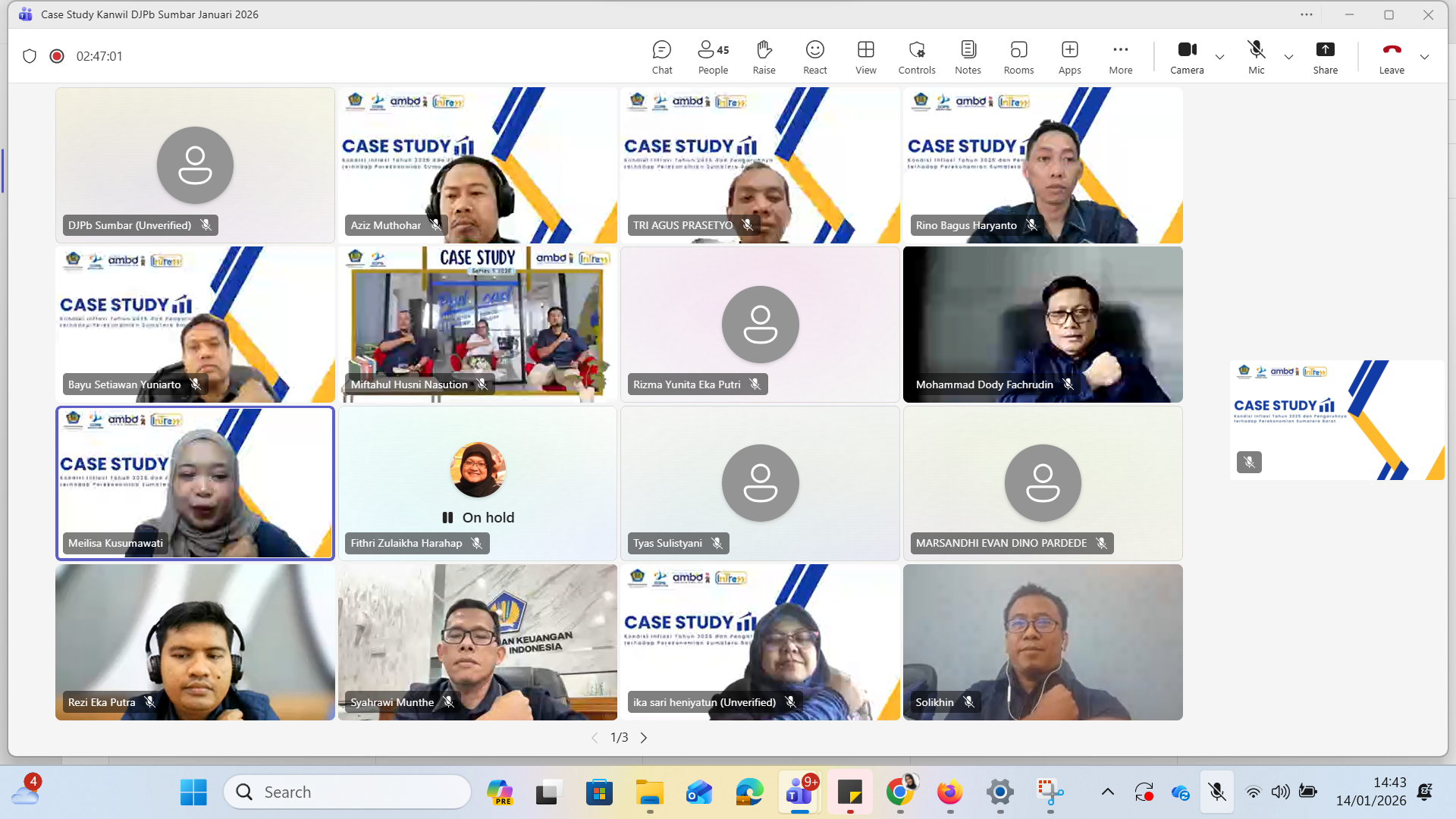 Padang, 14 Januari 2026 - Kantor Wilayah Direktorat Jenderal Perbendaharaan Provinsi Sumatera Barat menyelenggarakan Diskusi Case Study dalam rangka penguatan sumber daya manusia guna mendukung pelaksanaan peran sebagai Regional Chief Economist (RCE). Kegiatan ini dilaksanakan secara daring dengan format podcast dari Ruang Podcast Kanwil DJPb Provinsi Sumatera Barat serta melalui platform Microsoft Teams.