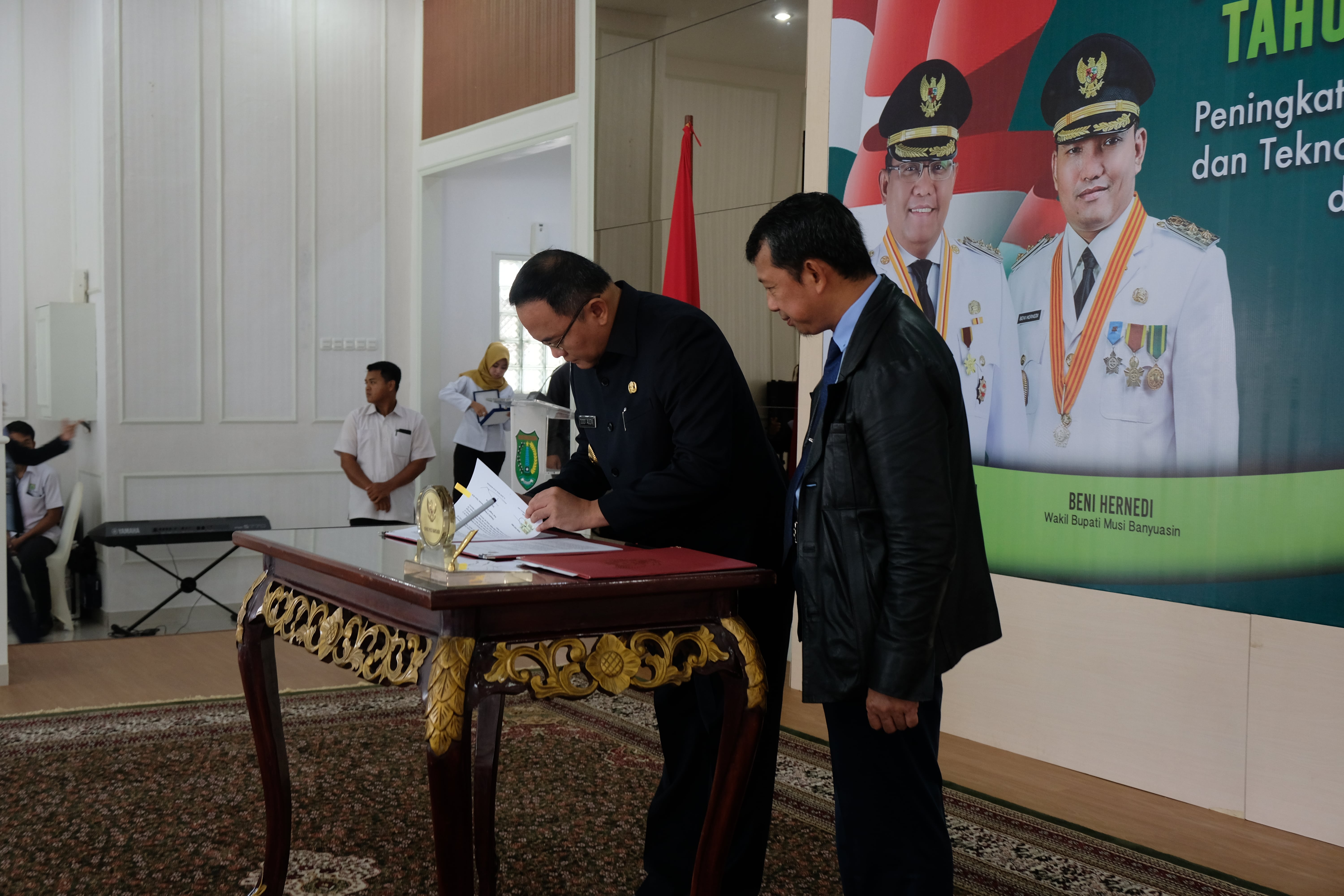 Sekayu, 19 Desember 2018 - Kepala Kanwil DJPb Provinsi Sumatera Selatan melakukan penandatanganan Nota Kesepahaman (MoU) dengan Bupati Musi Banyuasin, Bapak H. Dodi Reza Alex Noerdin, di Griya Bumi Serasan Sekate.