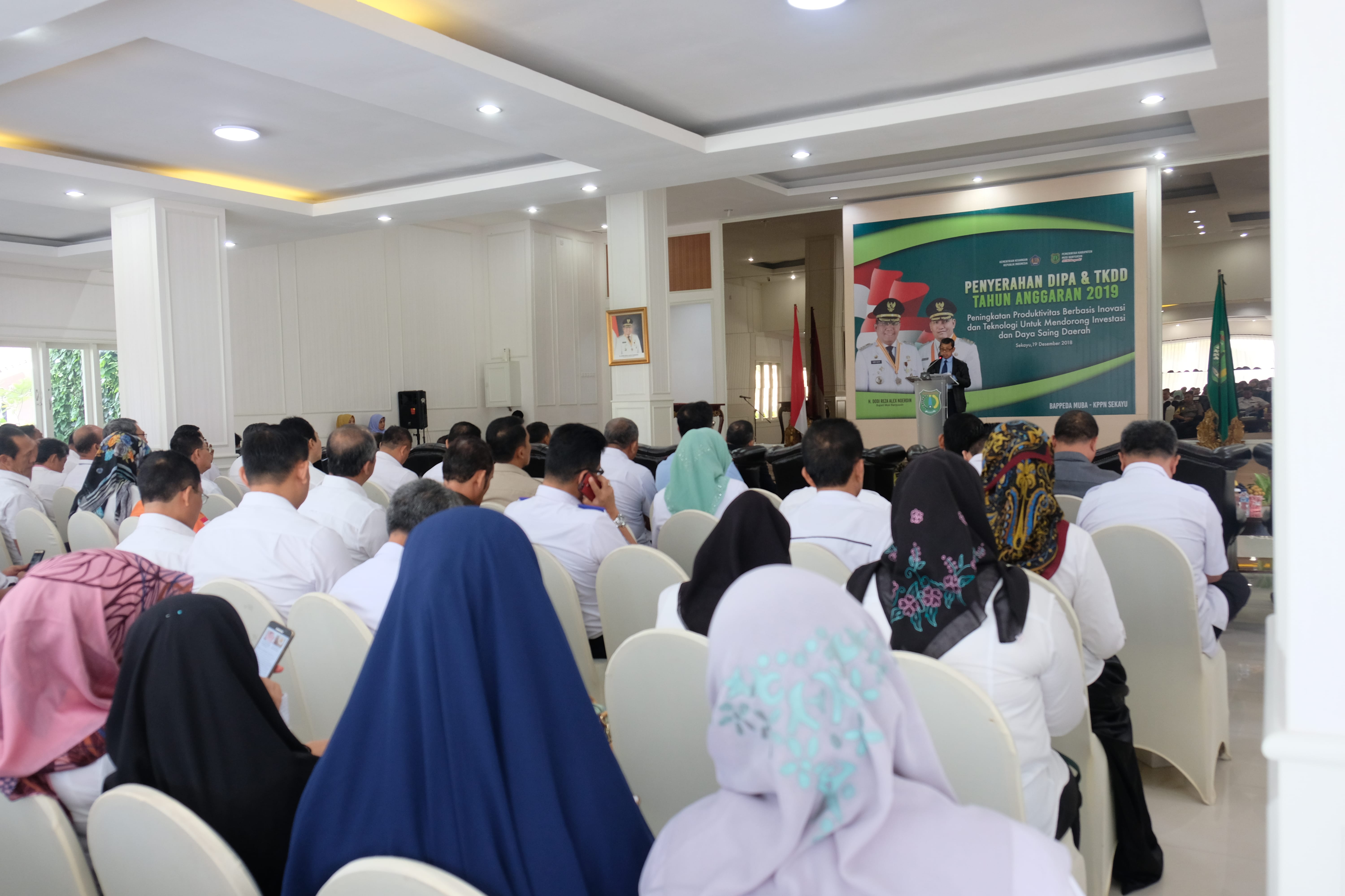 Sekayu, 19 Desember 2018 - Kanwil DJPb Provinsi Sumatera Selatan dan Pemerintah Kabupaten Musi Banyuasin bersama-sama mengadakan kegiatan Penyerahan Alokasi TKDD dan Daftar Isiian Pelaksanaan Anggaran (DIPA) Petikan Tahun Anggaran 2019 pada hari Rabu, 19 Desember 2018, di Griya Bumi Serasan Sekate Pemerintah Kabupaten Musi Banyuasin.
