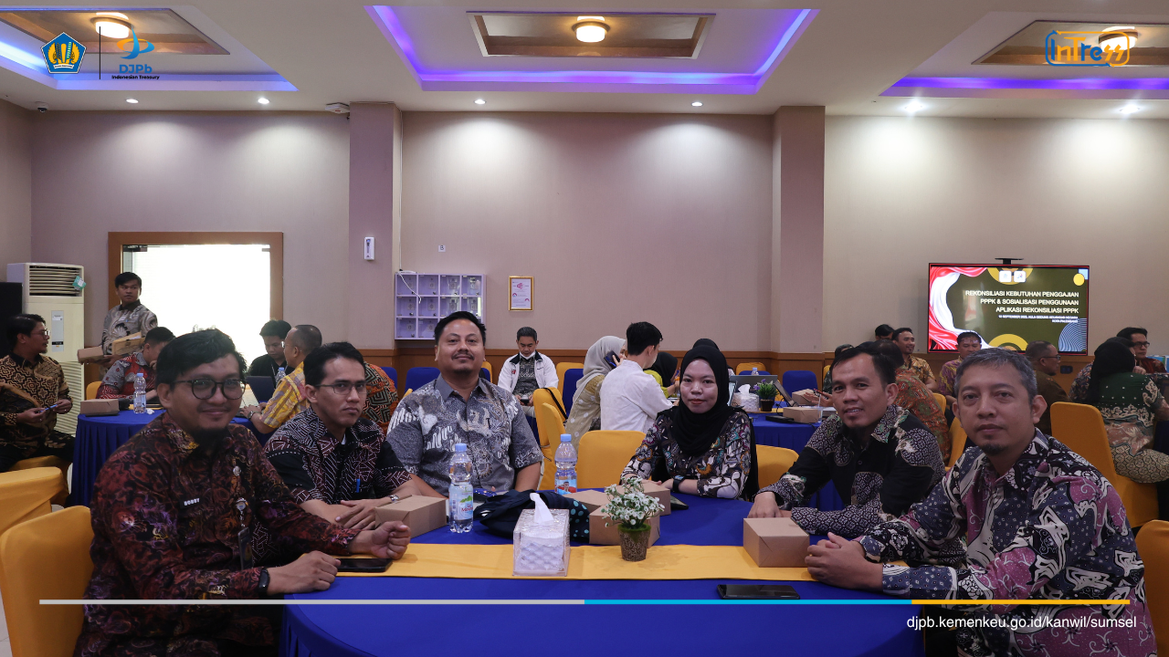 Palembang, 12 September 2025 – Kanwil Direktorat Jenderal Perbendaharaan (DJPb) Provinsi Sumatera Selatan menyelenggarakan kegiatan Rekonsiliasi Data Kebutuhan Penggajian PPPK dan Sosialisasi Penggunaan Aplikasi Rekonsiliasi PPPK.