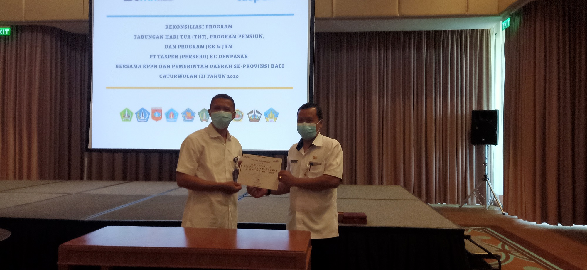 Layanan PT Taspen Cabang Denpasar yang selama ini dilaksanakan satu bulan sekali memang belum dapat dilaksanakan sesuai jadwal/secara penuh di masa pandemi. Dengan demikian, layanan bersama diarahkan ke Layanan E-klim. Hal ini menjadi salah satu pembahasan dalam Rapat Koordinasi Rekonsiliasi Data IWP dengan PT Taspen Caturwulan III Tahun 2020 yang diadakan pada hari Rabu, 17 Maret 2021. Selain penandatanganan BAR antara PT Taspen dengan KPPN Amlapura dan Pemda, dalam kegiatan ini juga dilakukan pembahasan hal-hal terkait Program THT, Pensiun, JKK dan JKM yang perlu diketahui/disinkronisasi antara PT Taspen, KPPN dan Pemda.