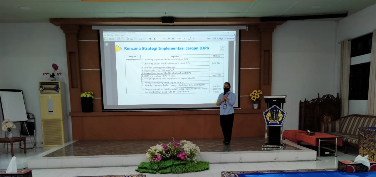 Menindaklanjuti arahan Dirjen Perbendaharaan untuk mewujudkan ‘New DJPb in town’, dilaksanakan Internalisasi slogan baru ‘DJPb Handal’ kepada pegawai KPPN Amlapura pada hari Rabu tanggal 23 Juni 2021. Internalisasi ini diharapkan dapat meningkatkan pemahaman para pegawai tentang makna DJPb HANDAL dan memperkuat jiwa korps sebagai insan perbendaharaan pada KPPN Amlapura.